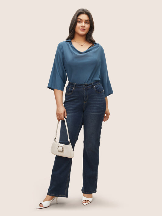 Cowl Neck Plain Bell Sleeve Blouse