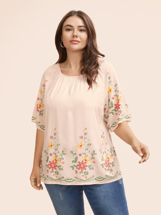 Floral Fiesta Pleated Square Neck Blouse