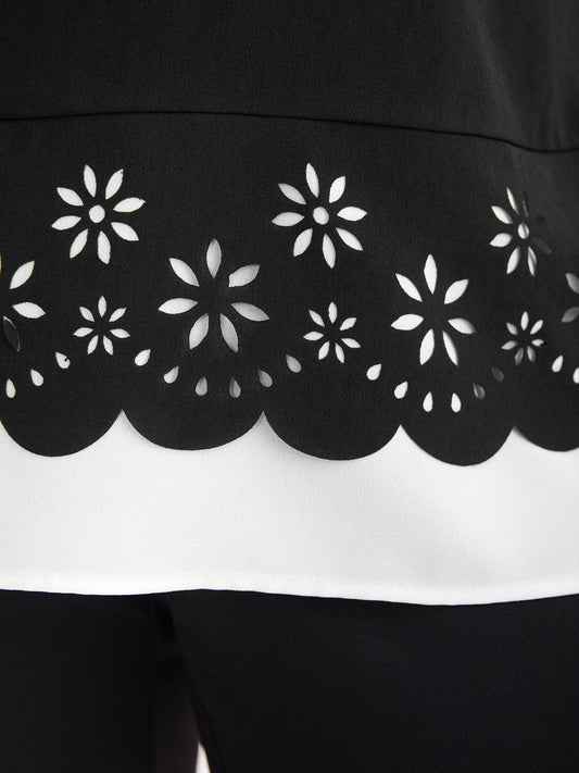 SAVE 50%Ruffled Neck Metal Cut-Out Blouse