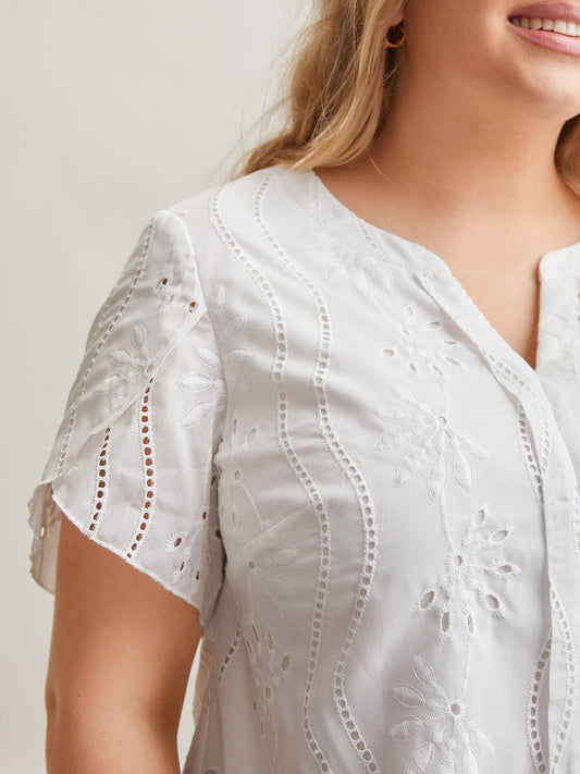 SAVE 40%Embroidered Petal Sleeve Sheer Shirt