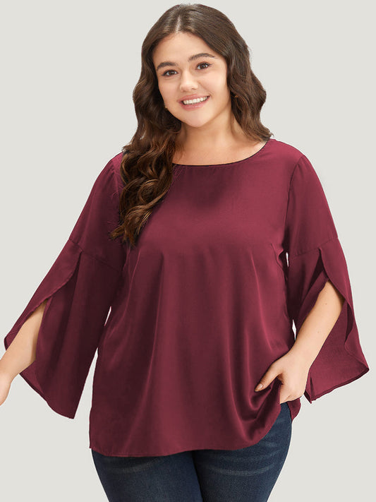 Anti-Wrinkle Plain Ruffle Layered Sleeve Crew Neck Blouse
