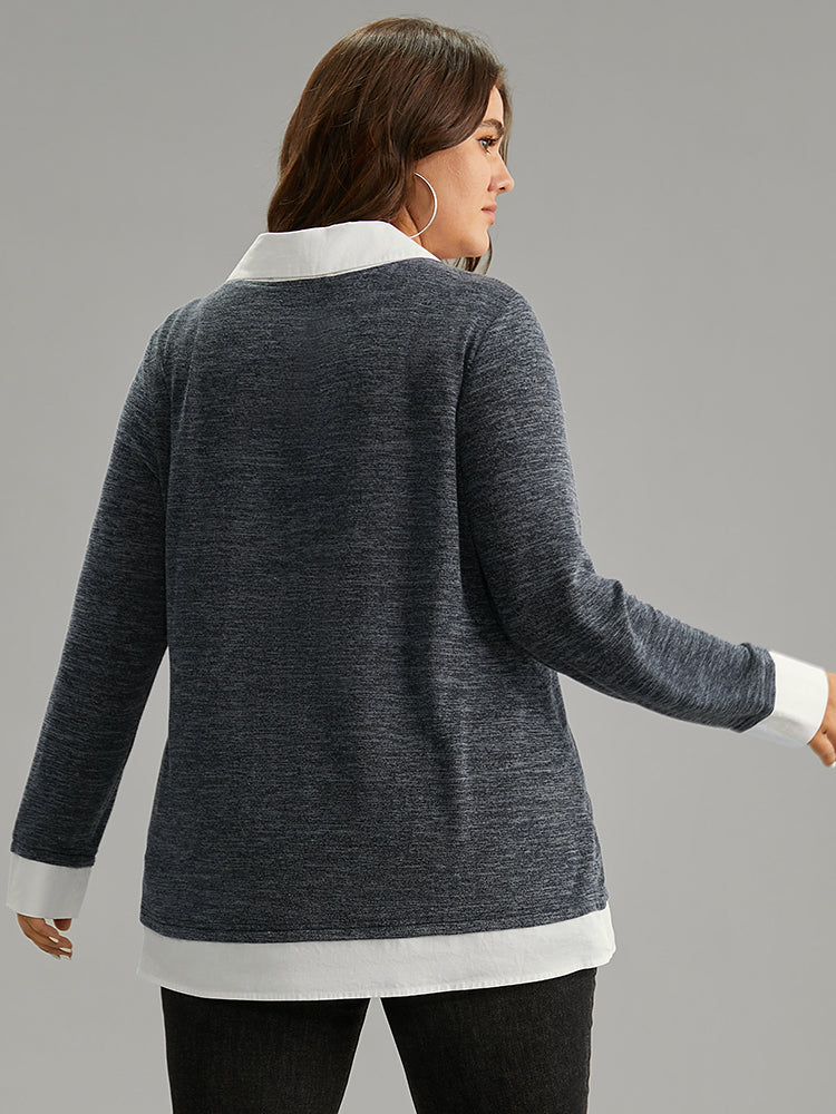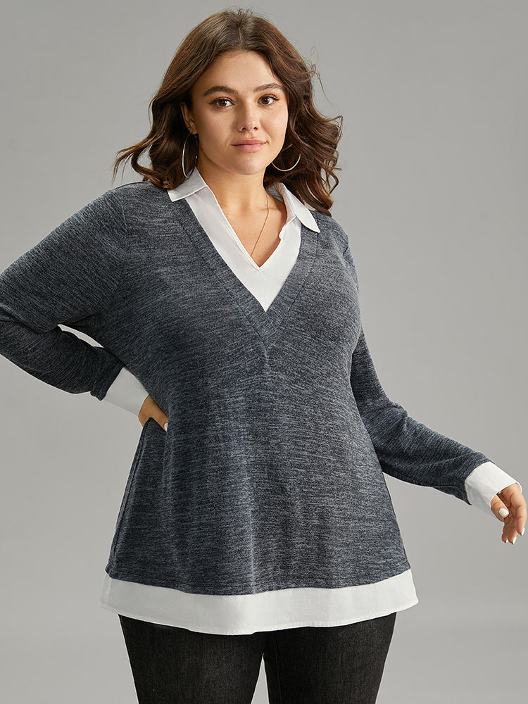 2-In-1 Contrast Patchwork Lapel Collar T-shirt