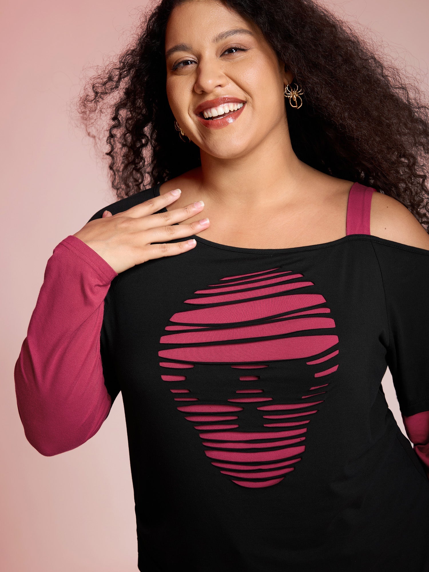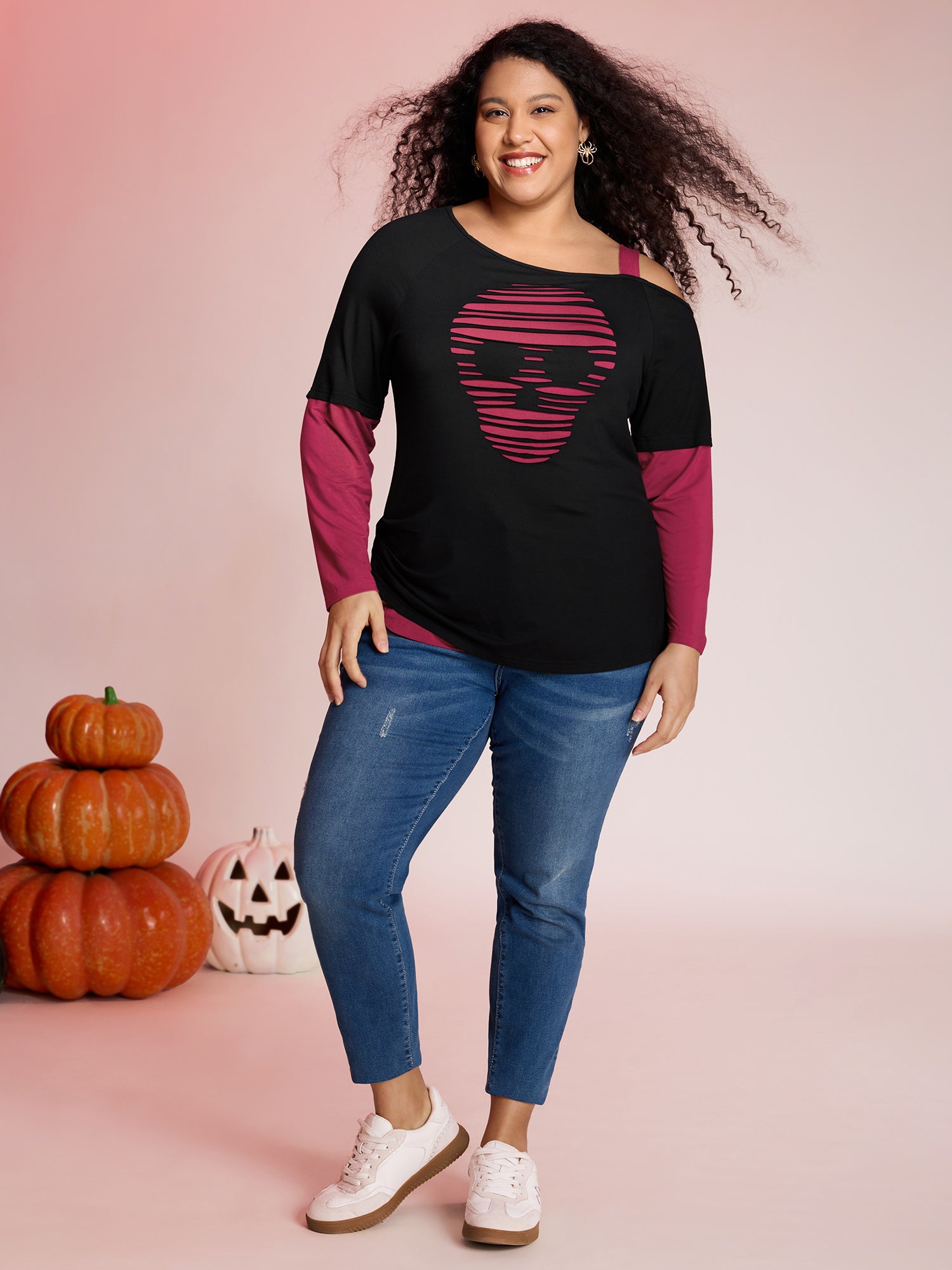 2-in-1 Supersoft Spooky Skull Print T-Shirt