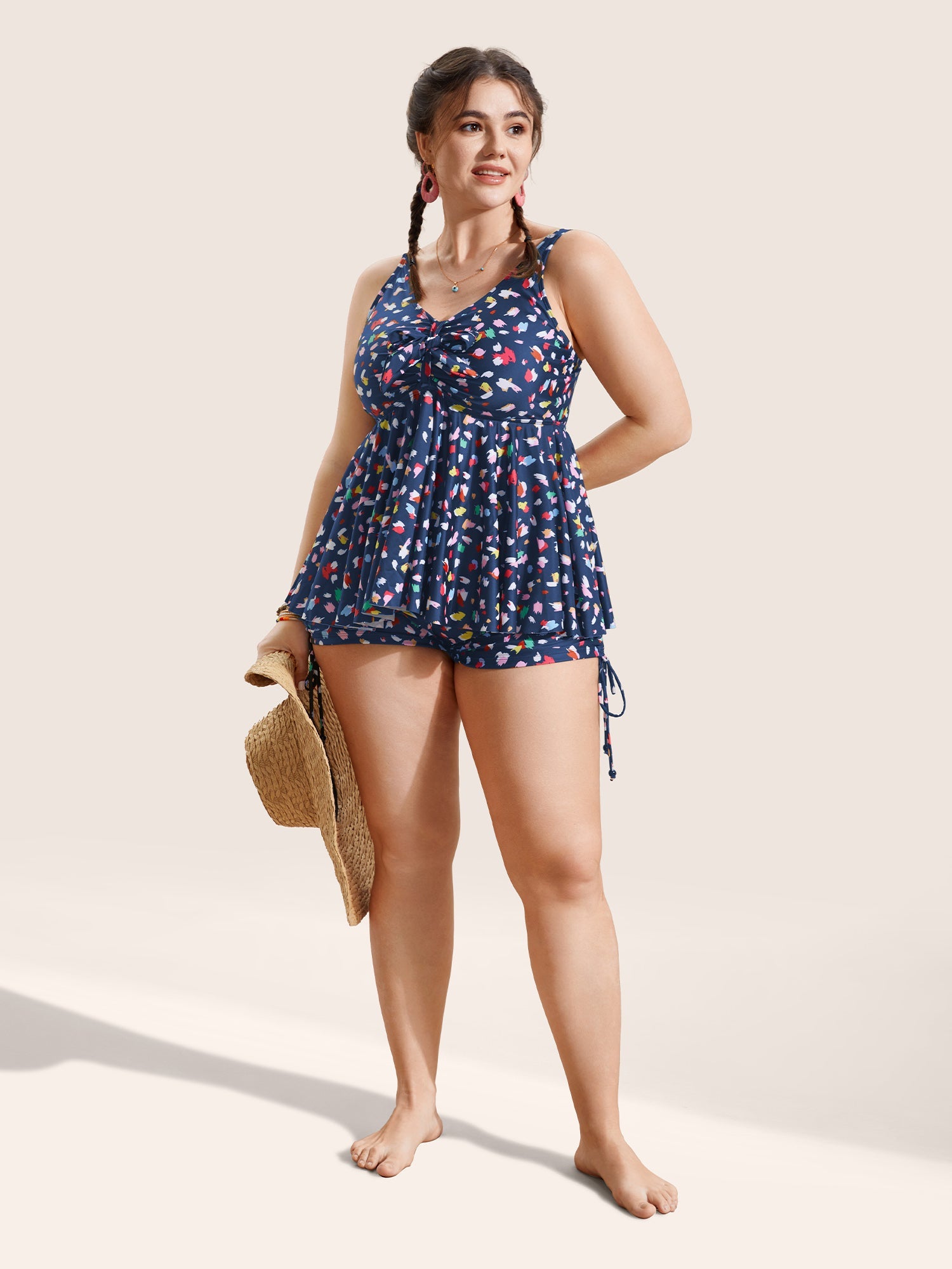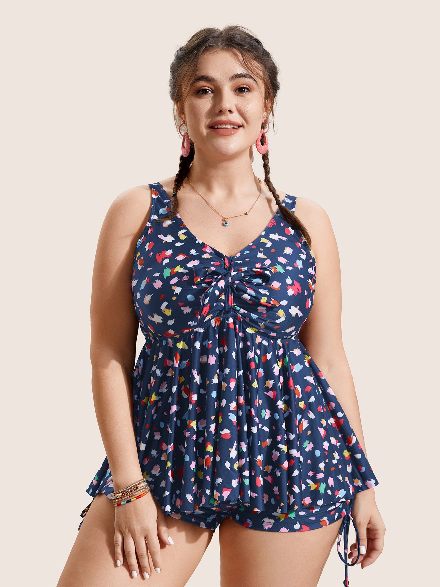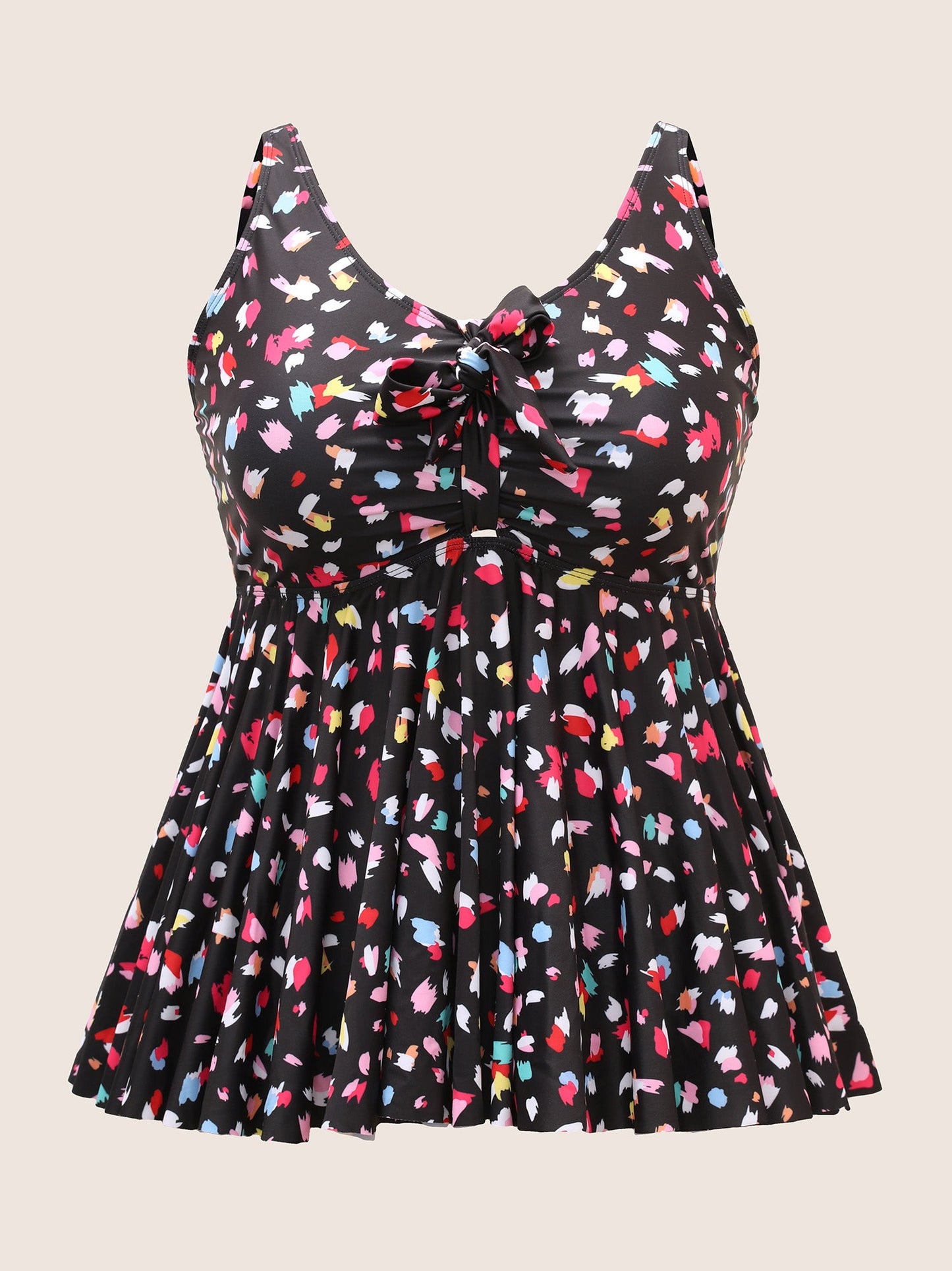 Allover Print V Neck Gathered Swim Top
