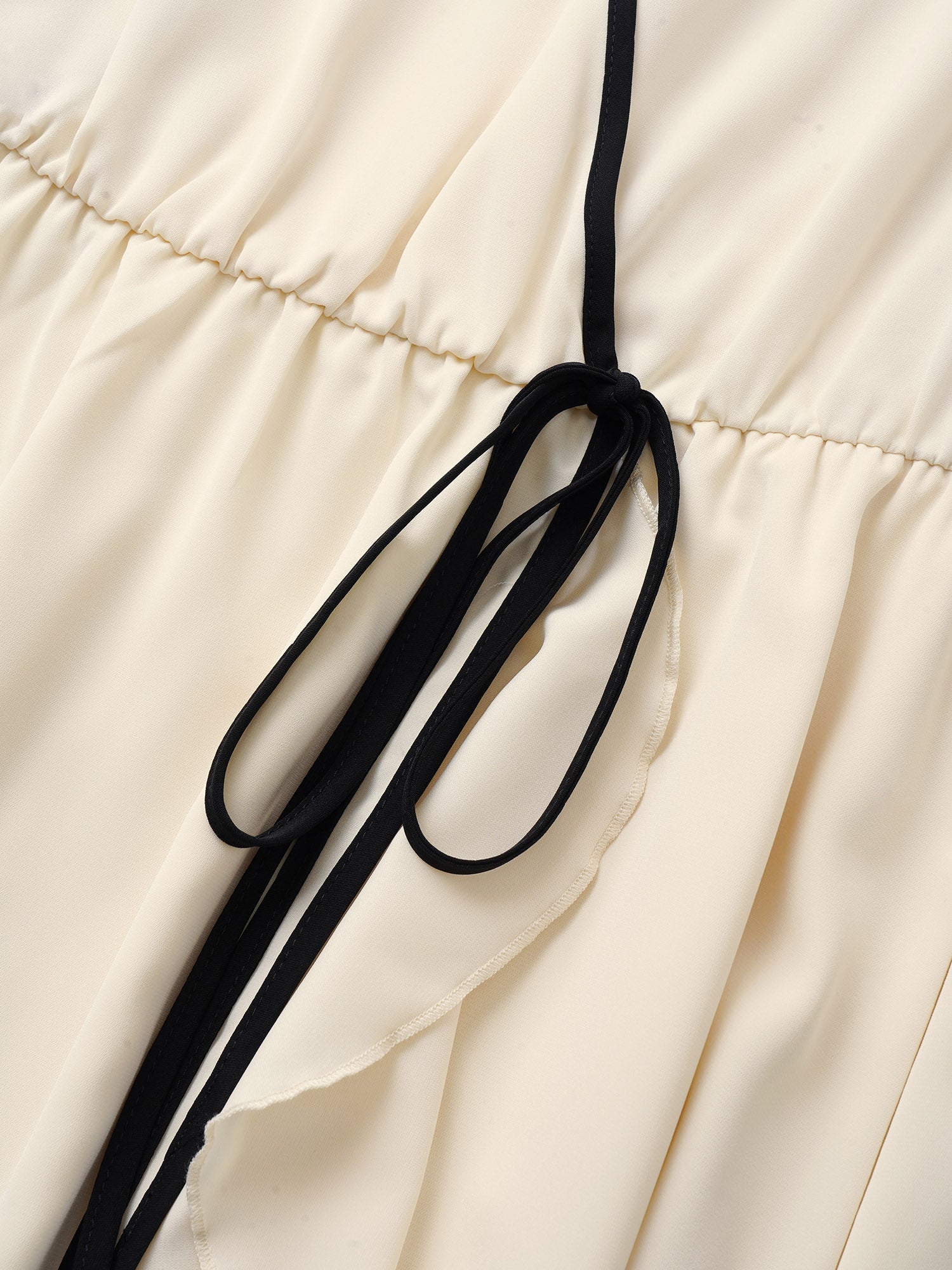 Anti-Wrinkle Wrap Tiered Ruffles Contrast Ties Dress