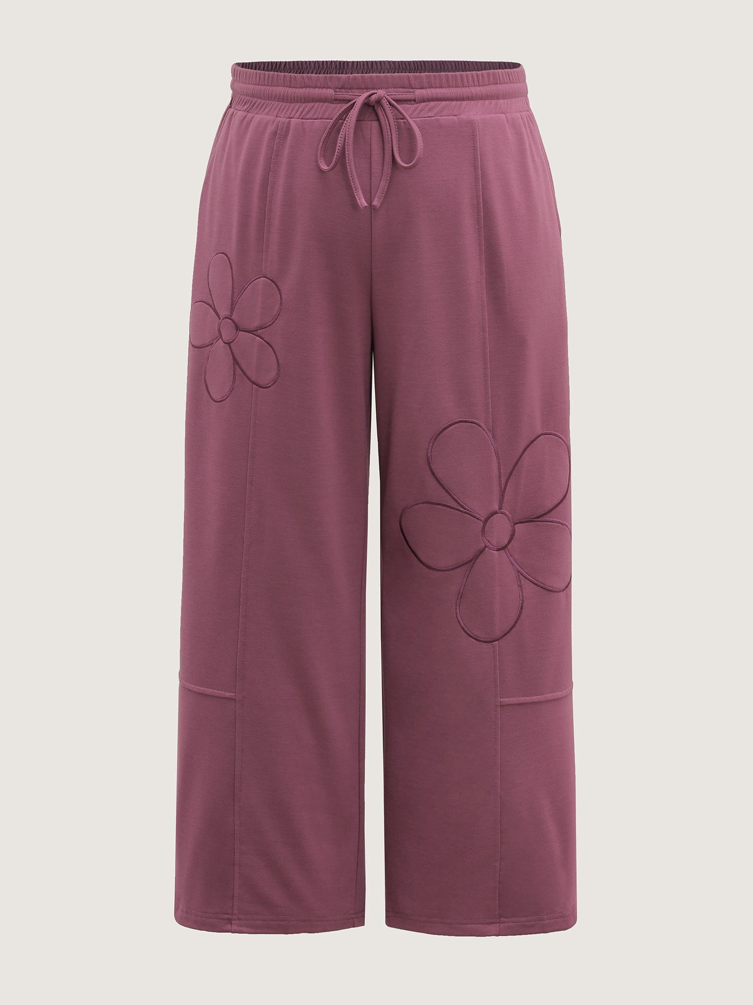 Applique Embroidery Drawstring Wide-Leg Pants