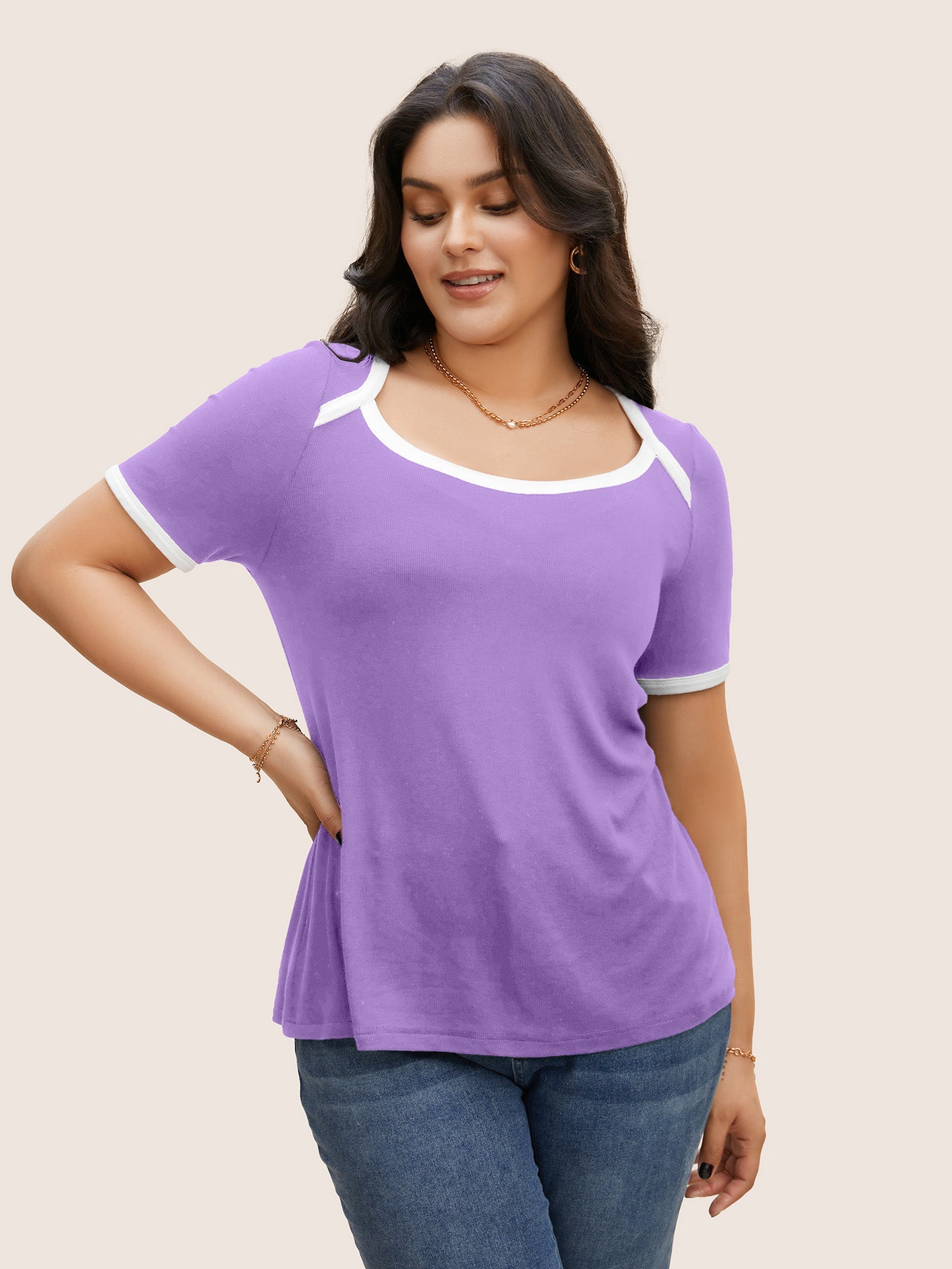 Asymmetrical Neck Contrast Trim Pit Strip T-shirt