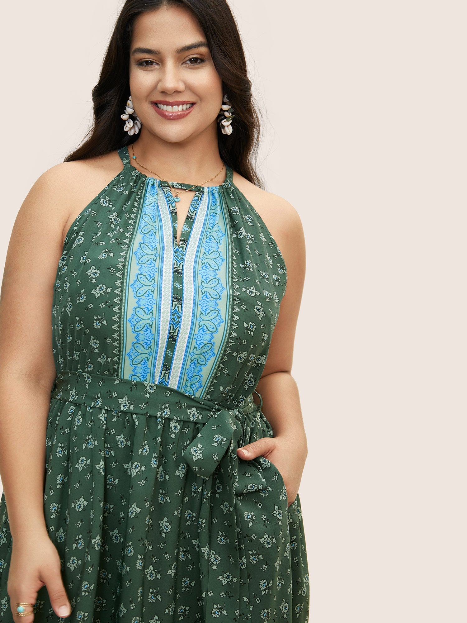 Bandana Print Halter Neck Tie Knot Dress