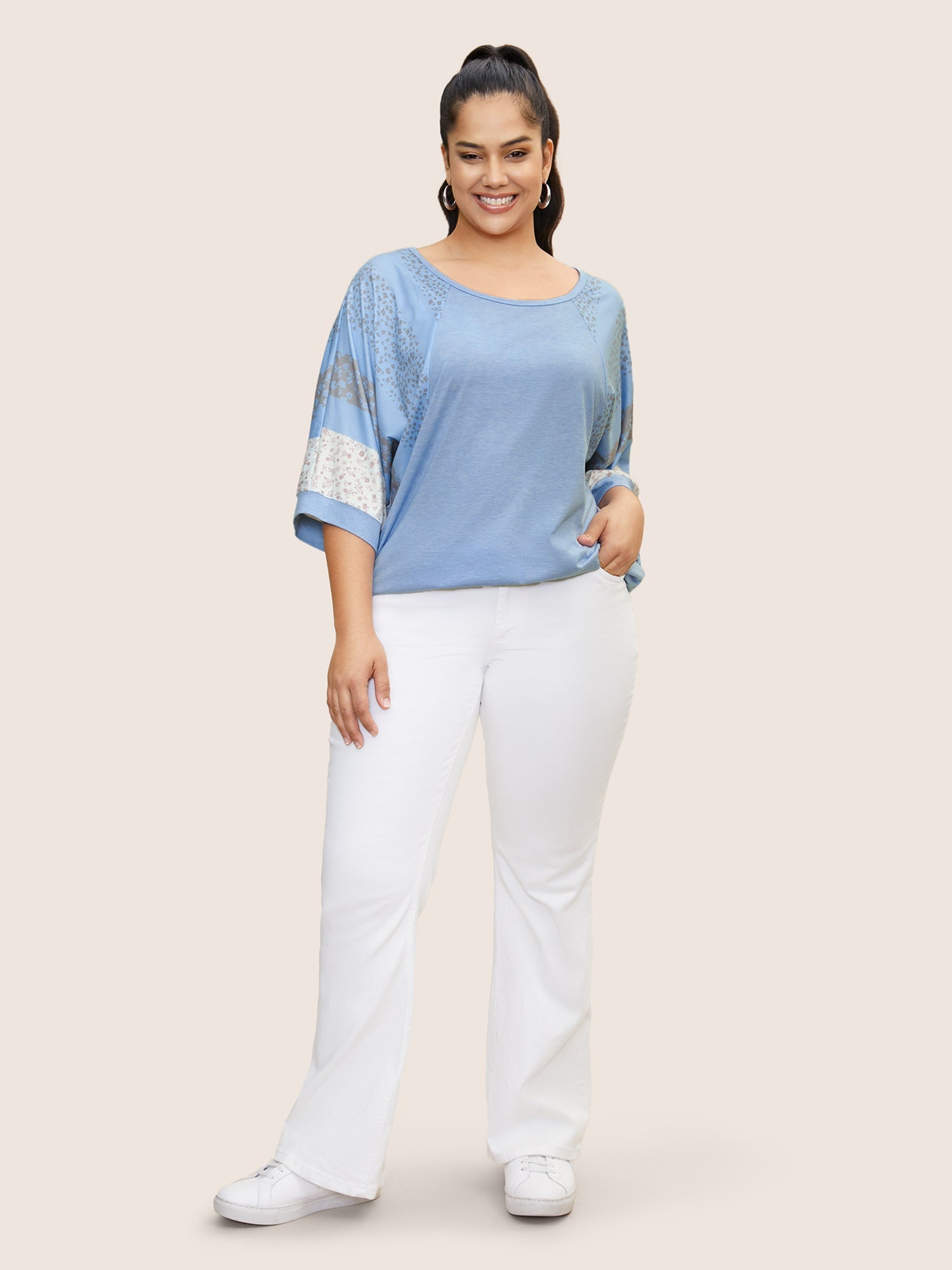 Bandana Print Patchwork Raglan Sleeve T-shirt