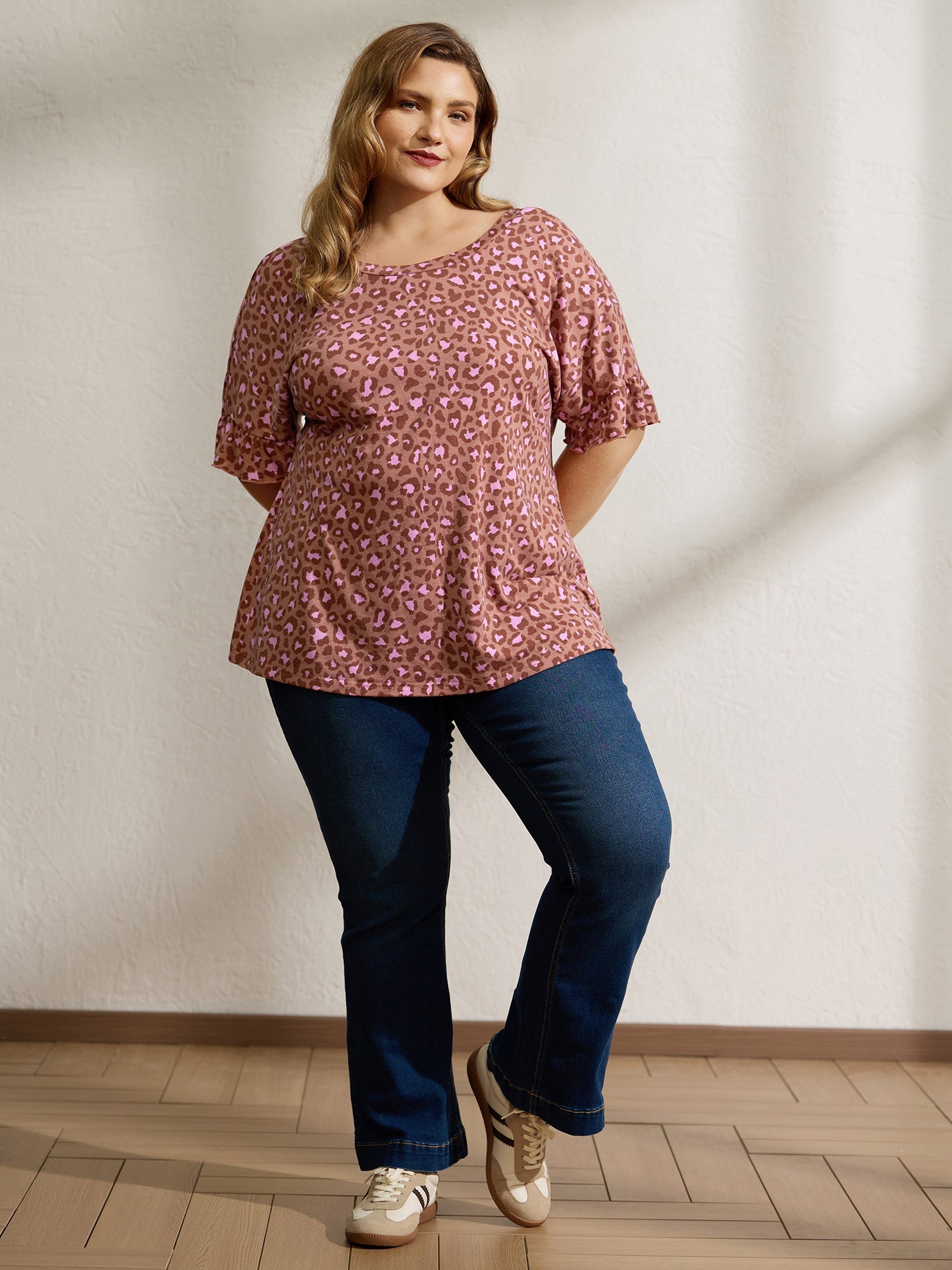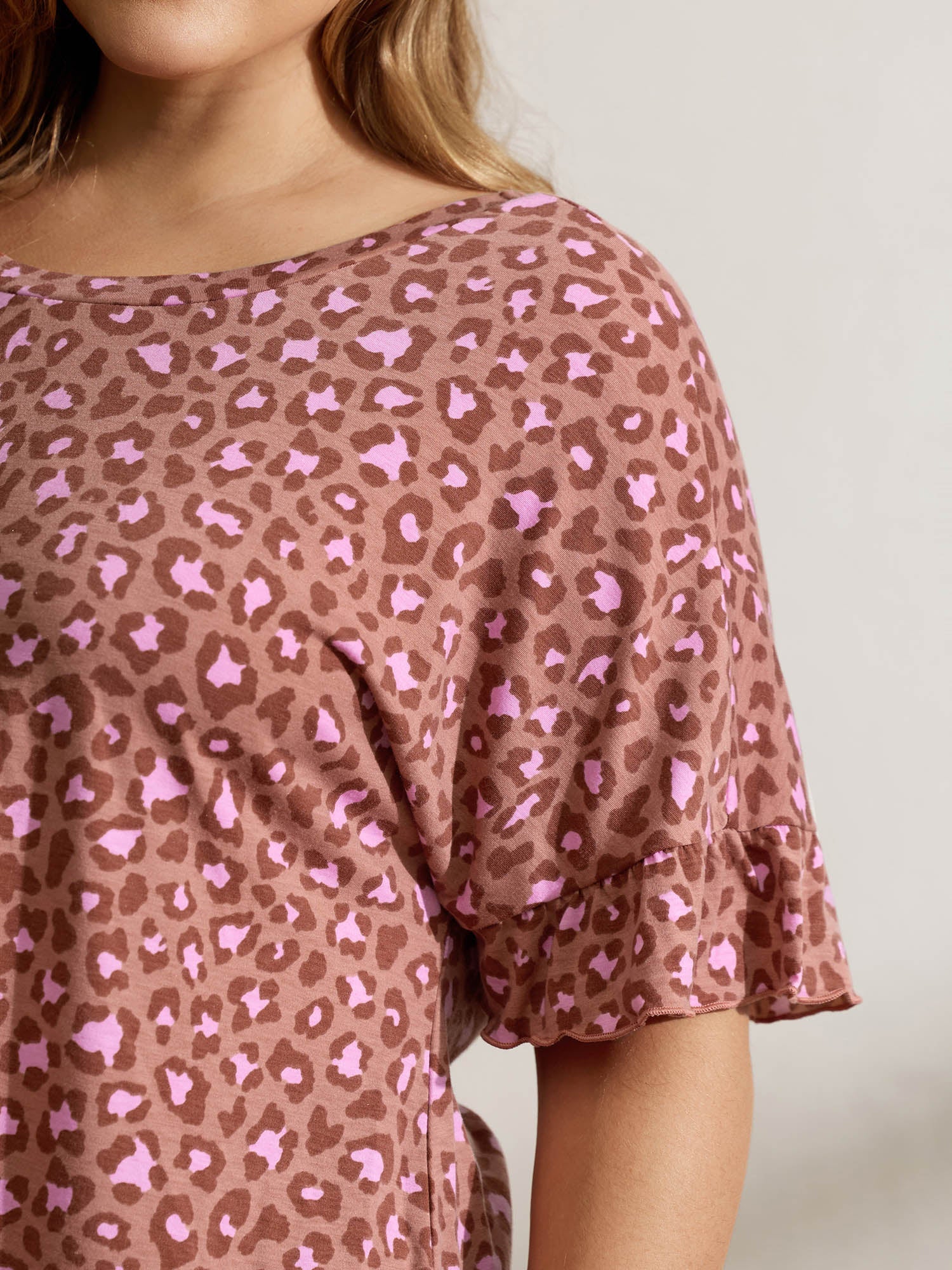 Blushing Leopard Print Cross-Strap Back T-Shirt