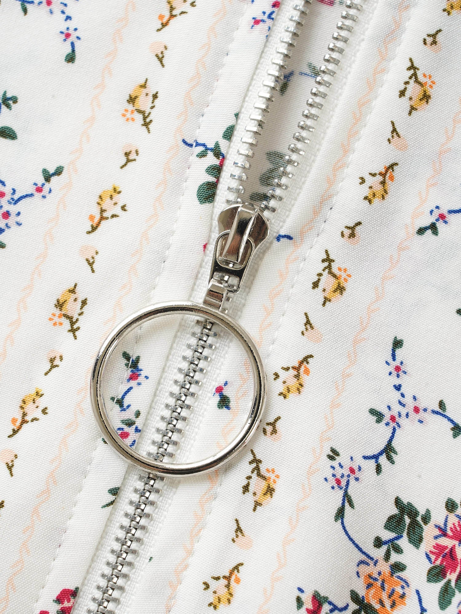 Boho Print O Ring Zipper Lantern Sleeve Blouse