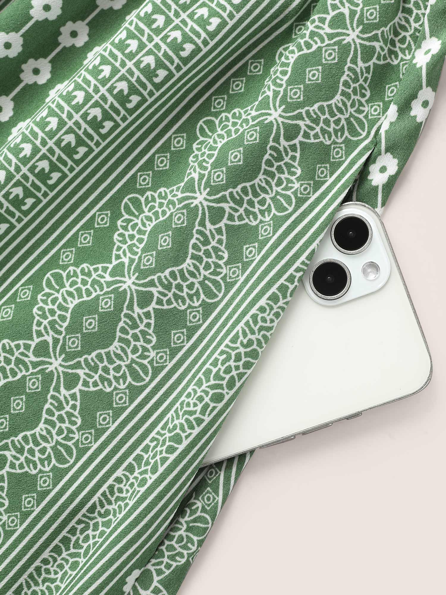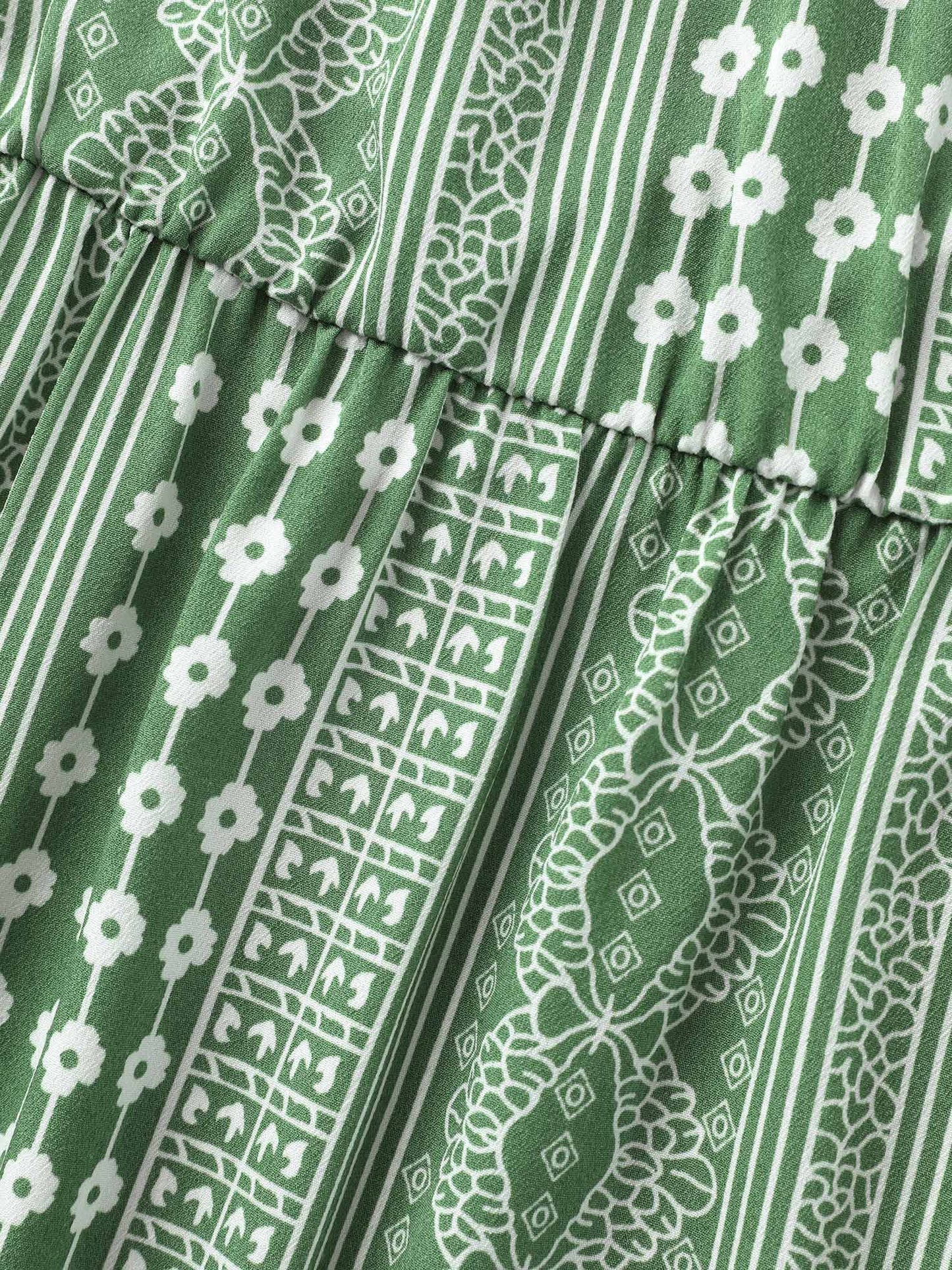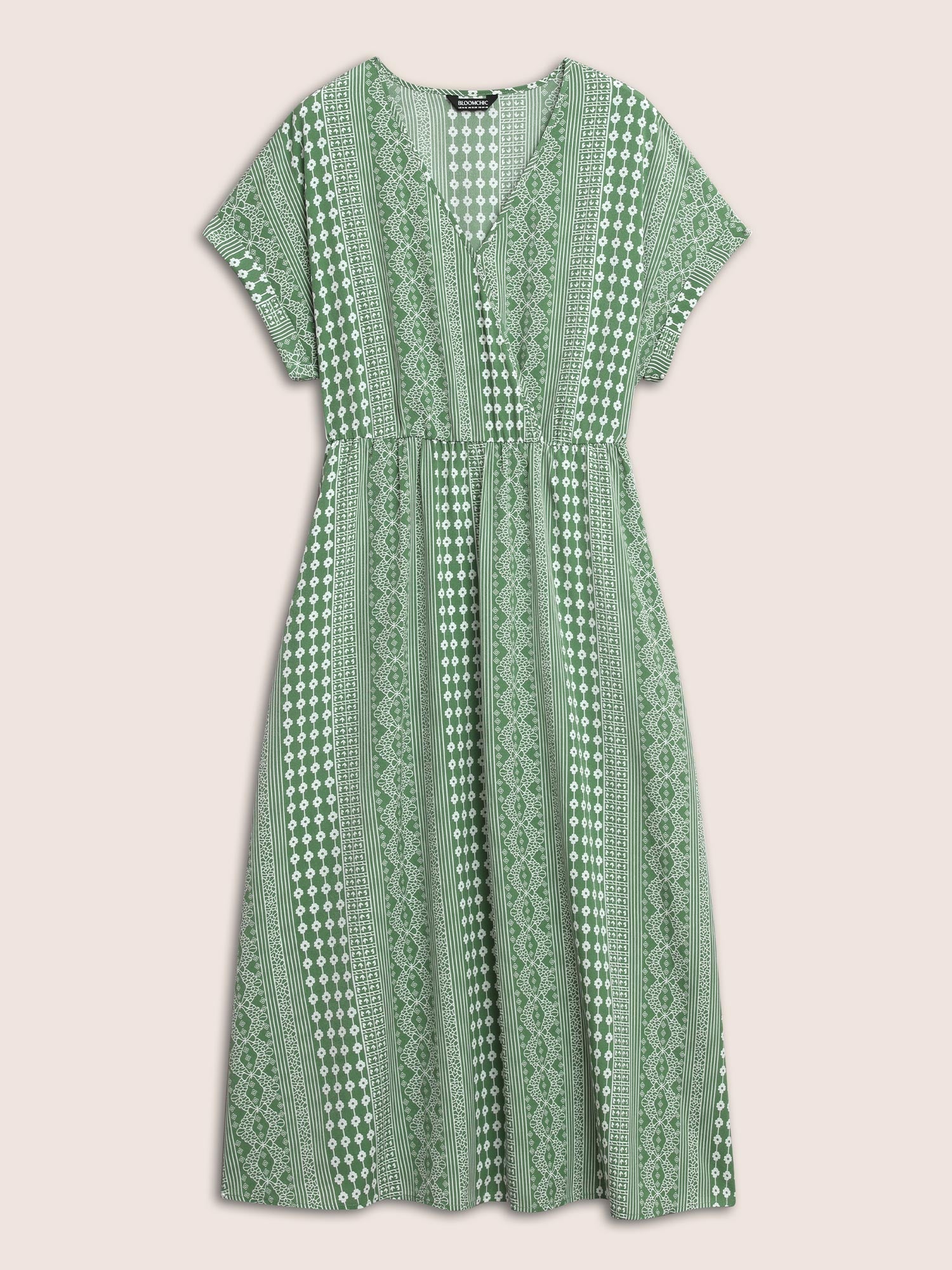 Boho Print Overlap Collar Dolman Sleeve Dress