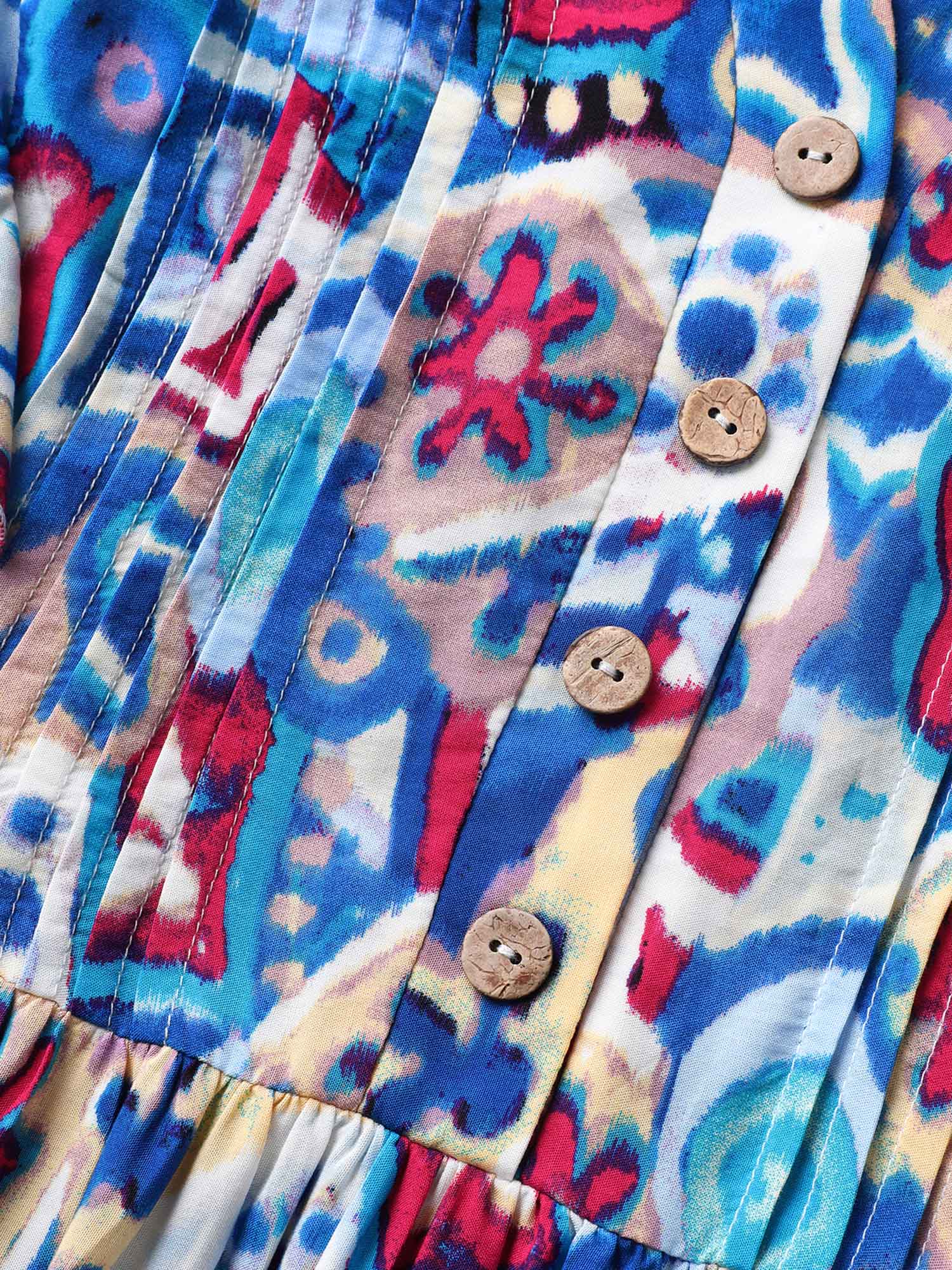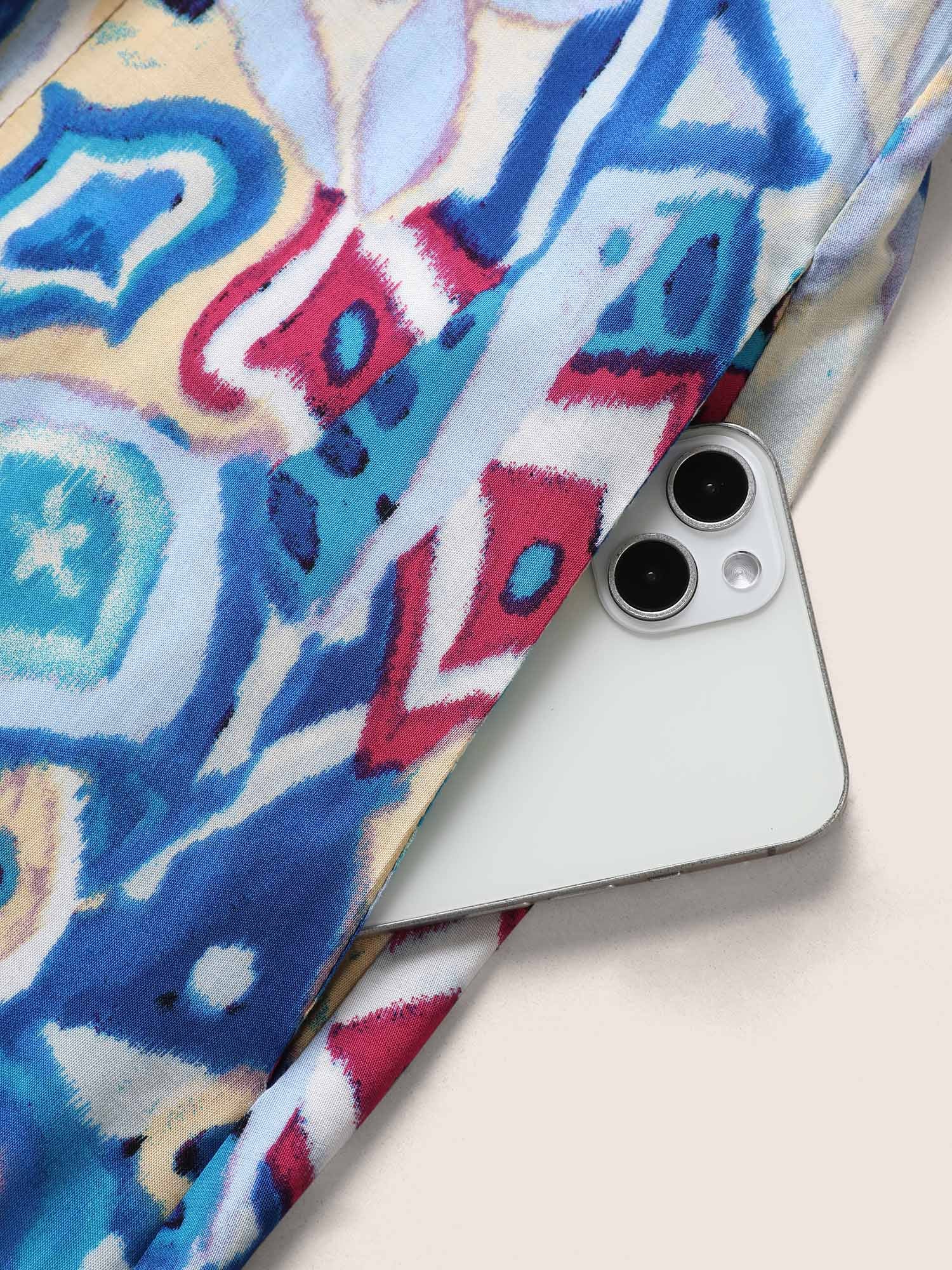 Boho Print Pleated Ruffle Sleeve Dress