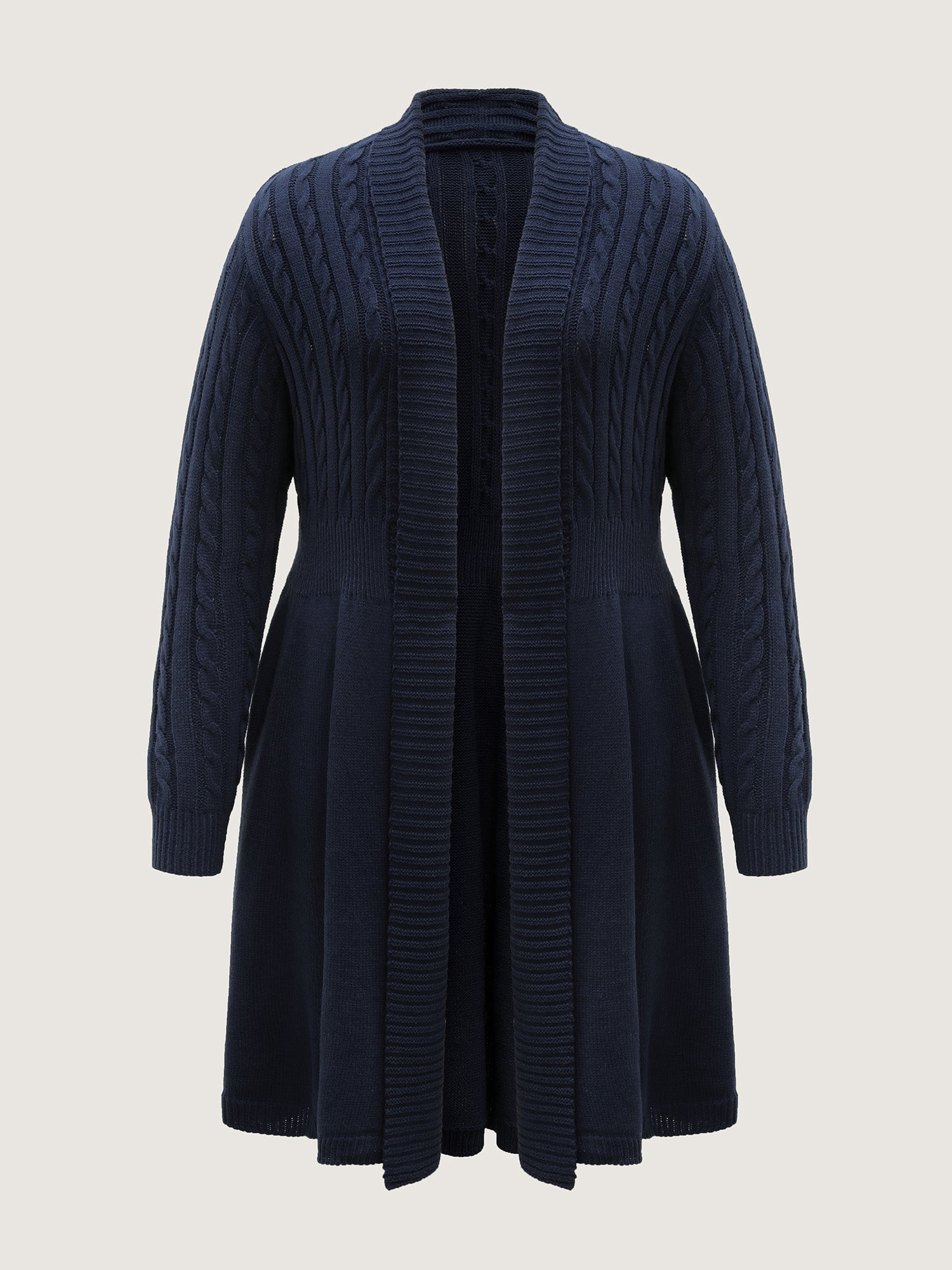 Cable Knit Cinched-Flared Waist Knit Cardigan