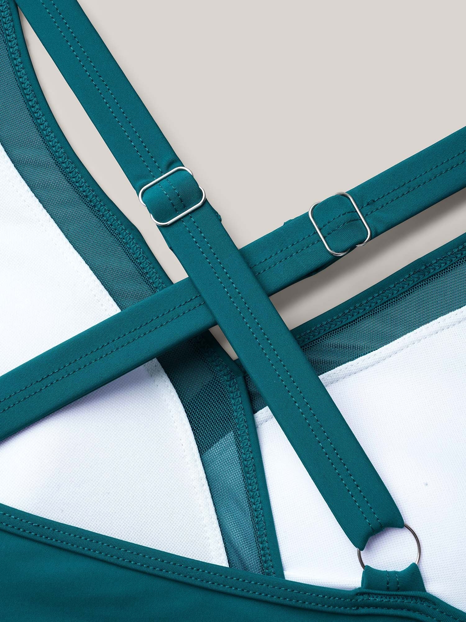 Channel Drawstring Gathered Surplice Neck Swim Dress