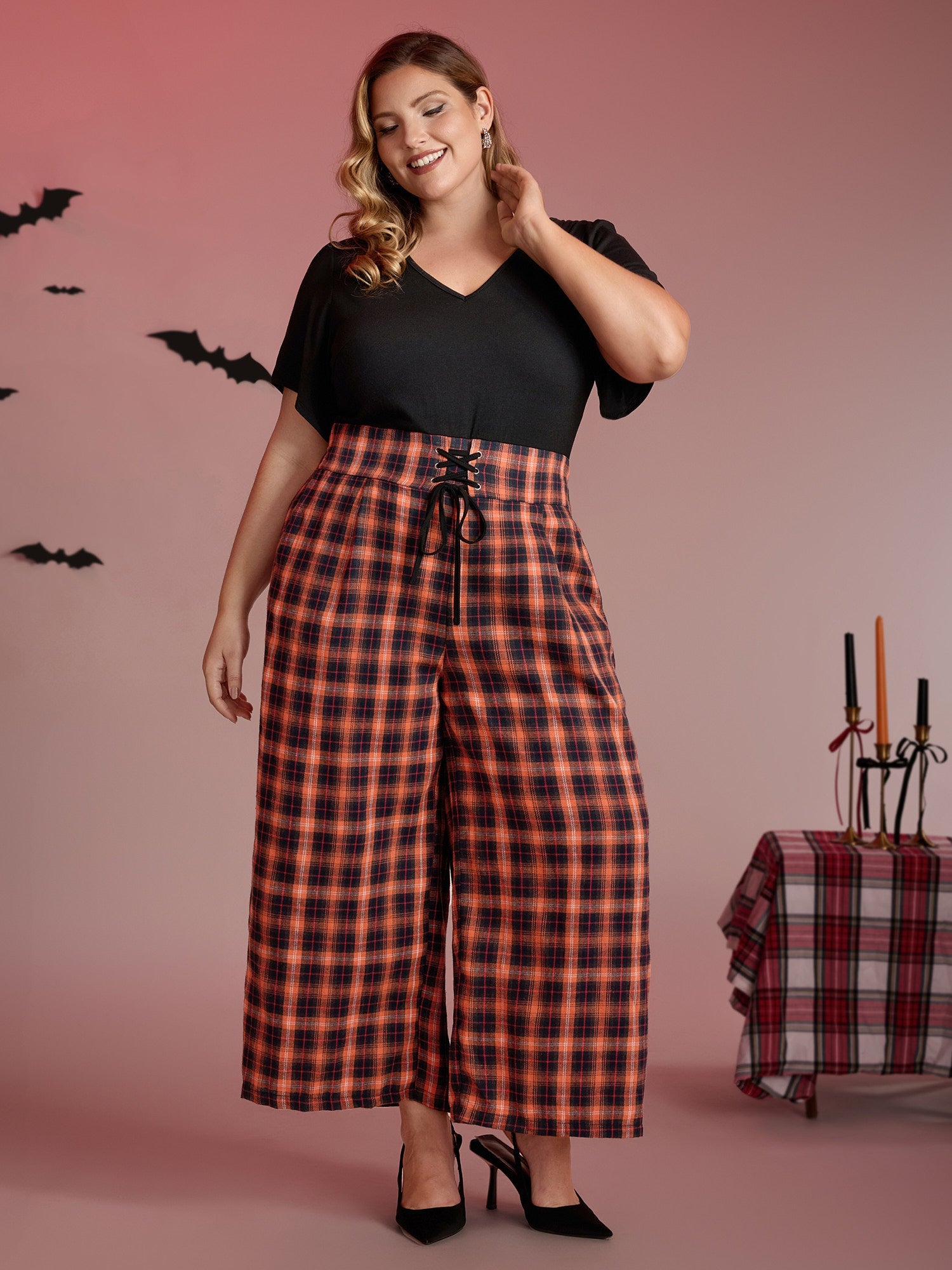 Checkered Print Pockets Cross-Tie Jumpsuit