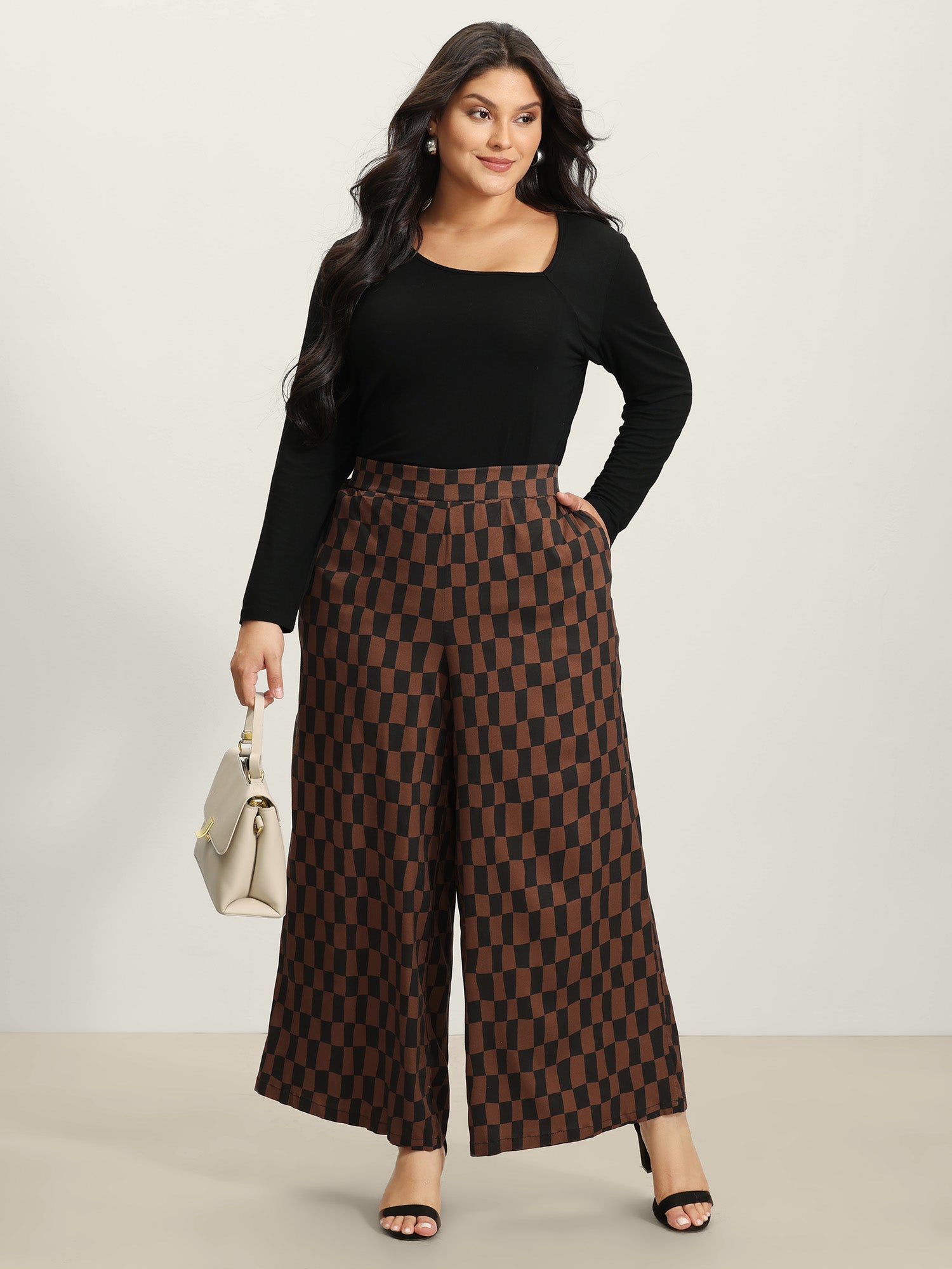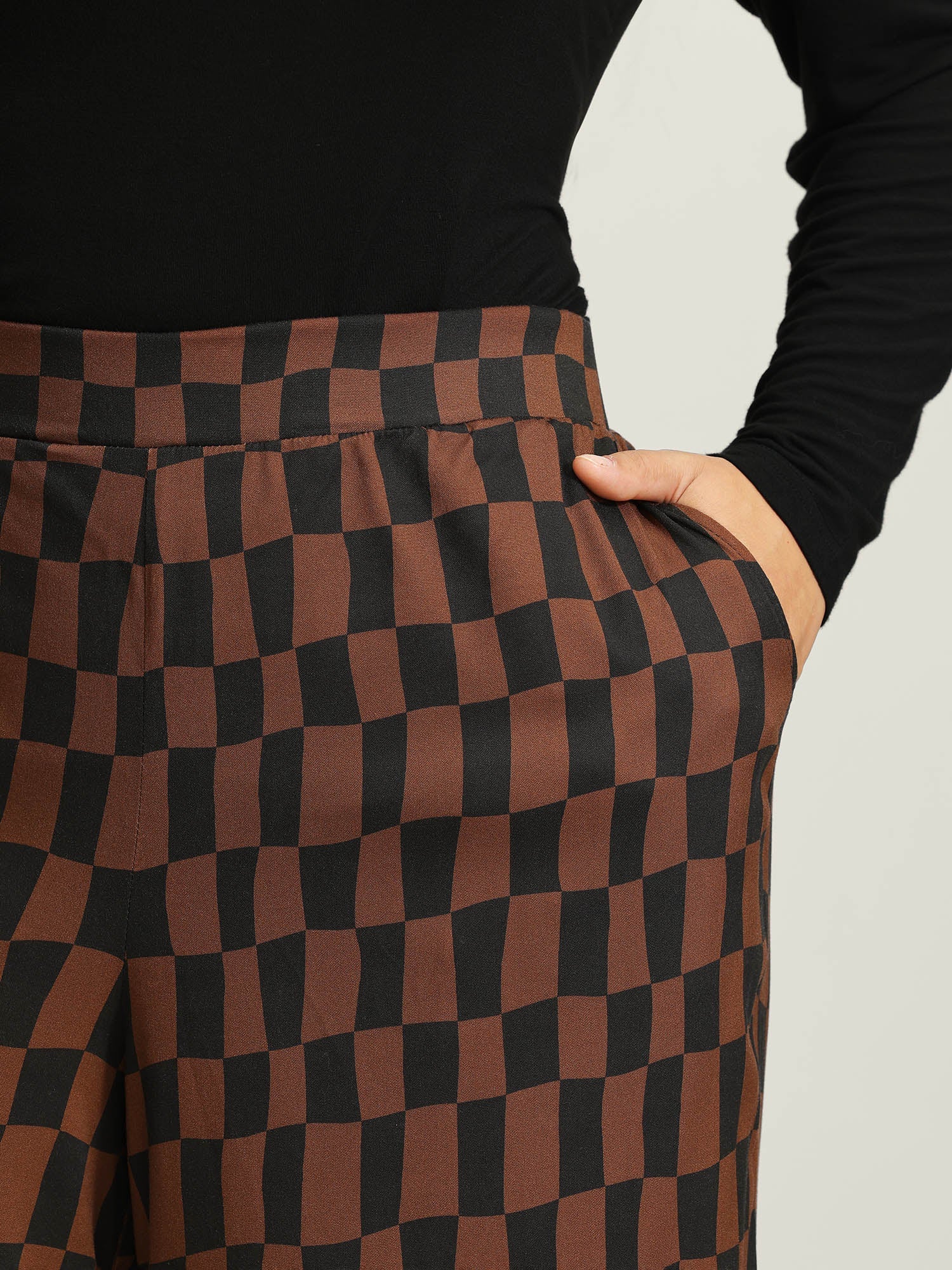 Checkered Print Wide-Leg Pants