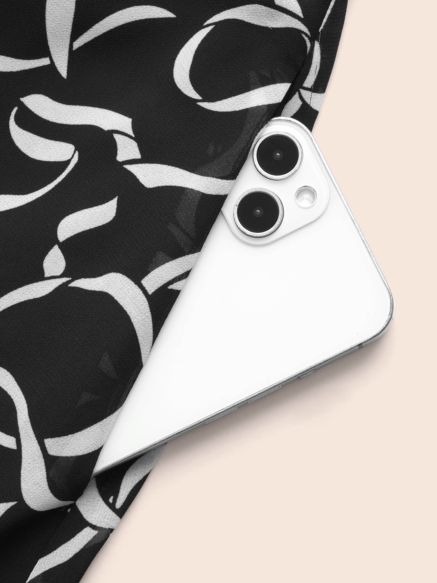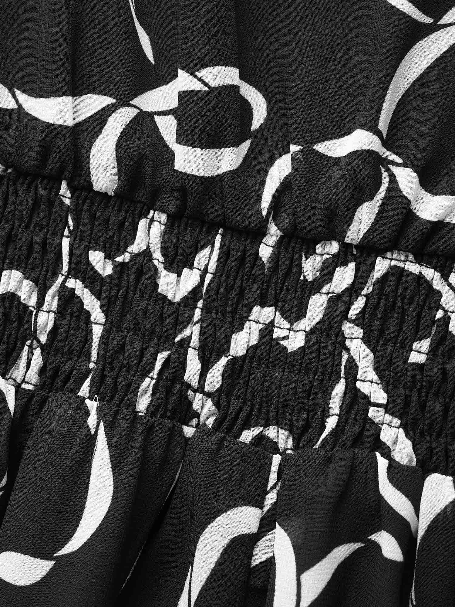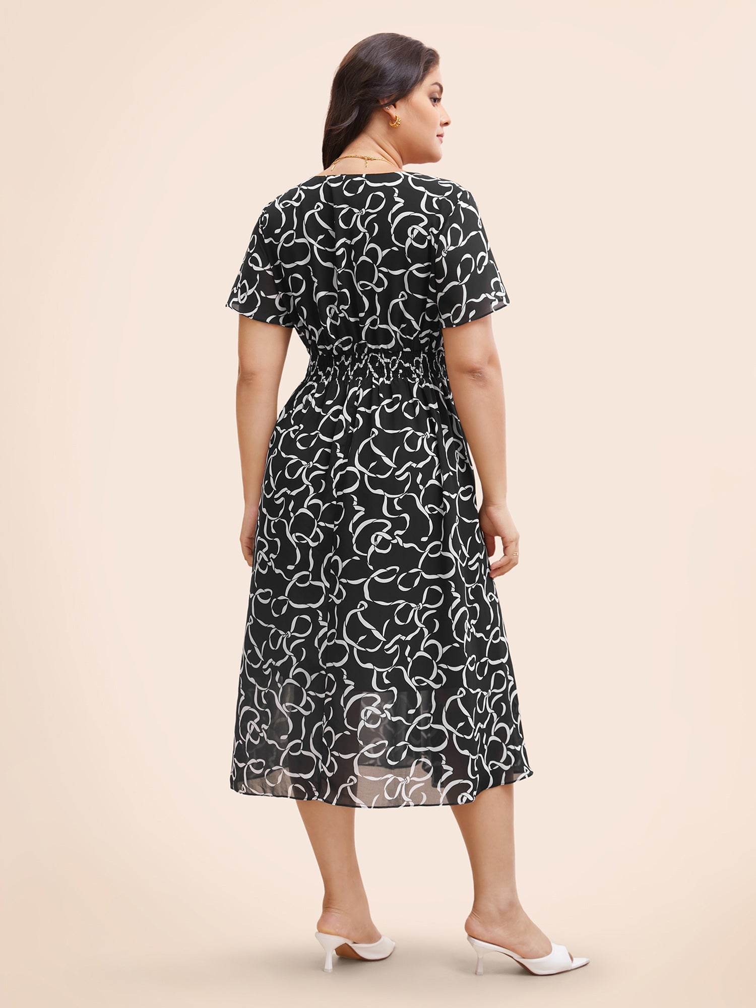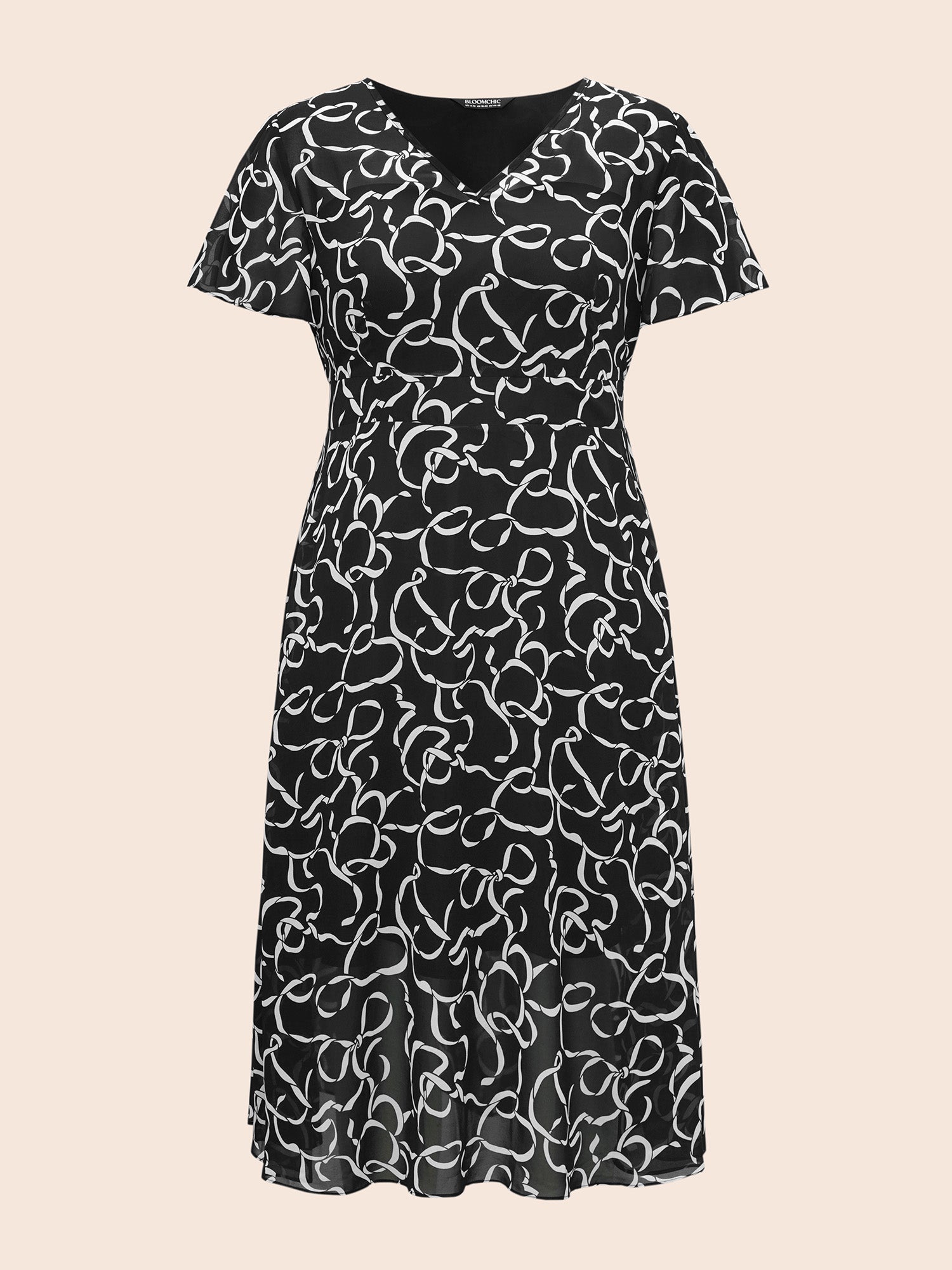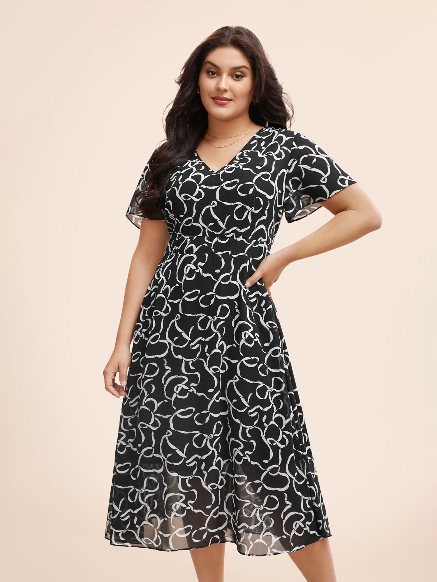 Chiffon Bowknot Print Ruffle Sleeve Midi Dress