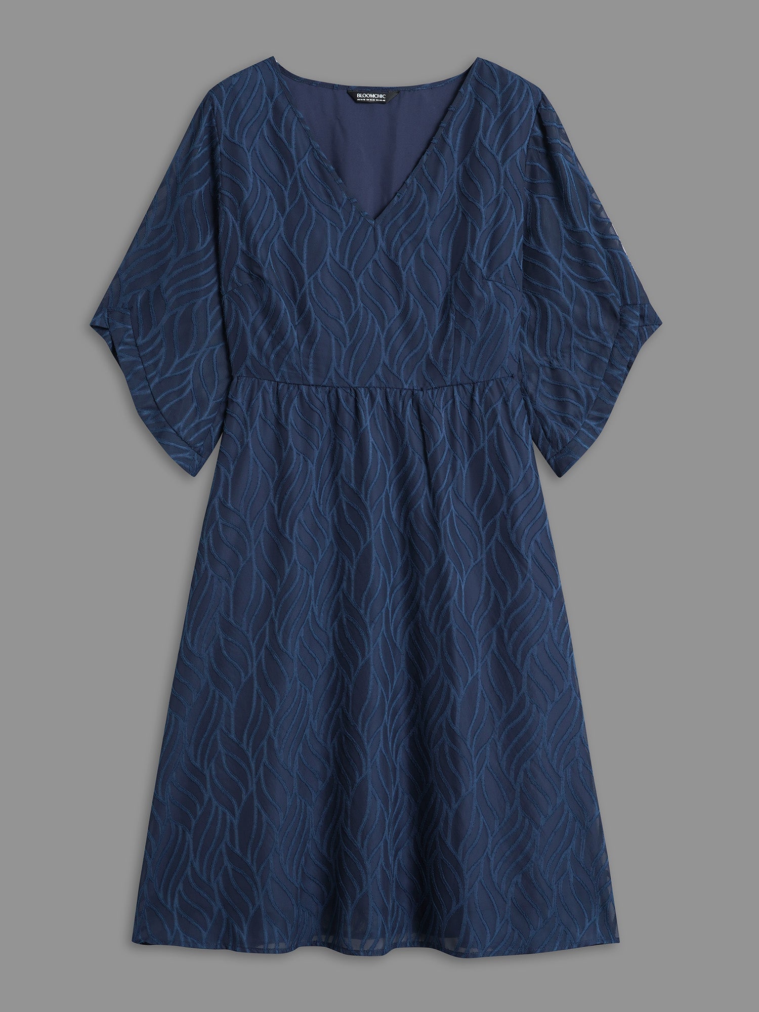 Chiffon Textured Sheer Sleeve Midi Dress