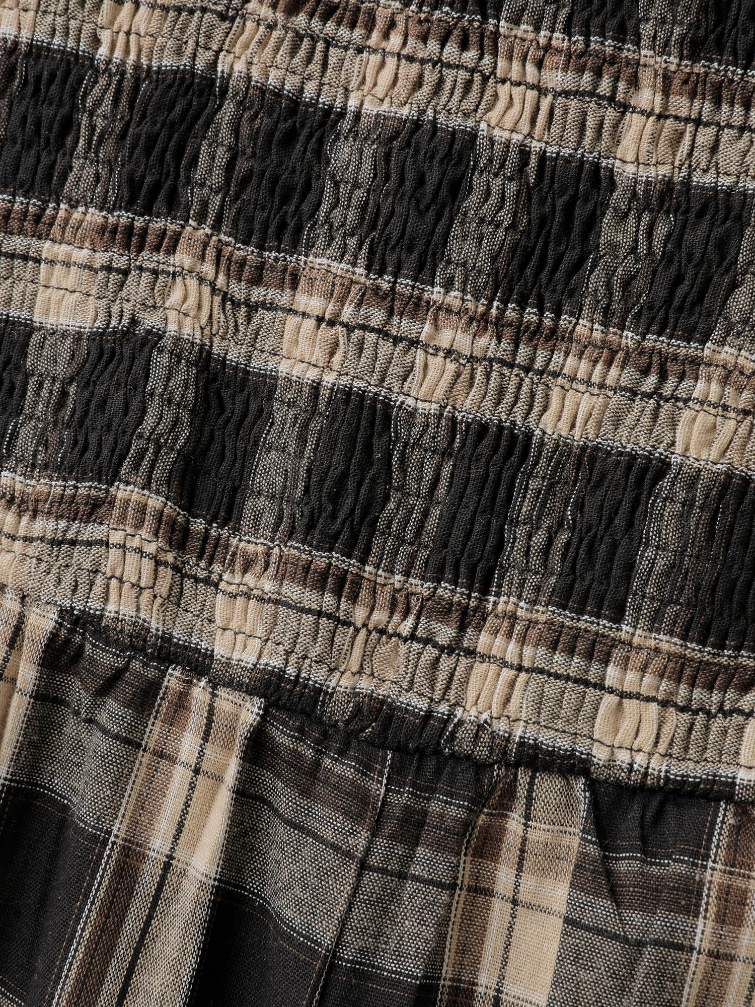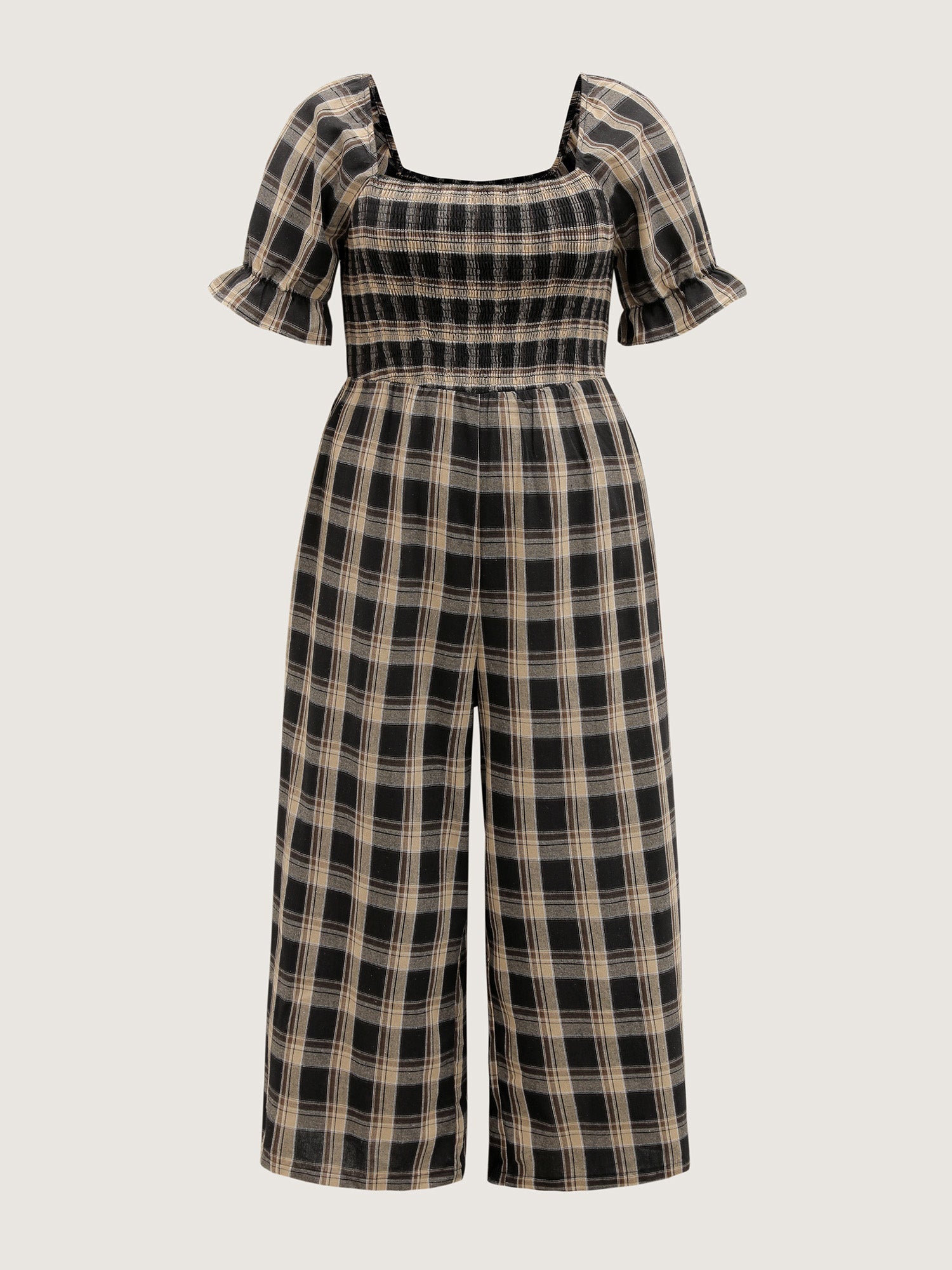 Classic Plaid Print Shirred Bodice Jumpsuit