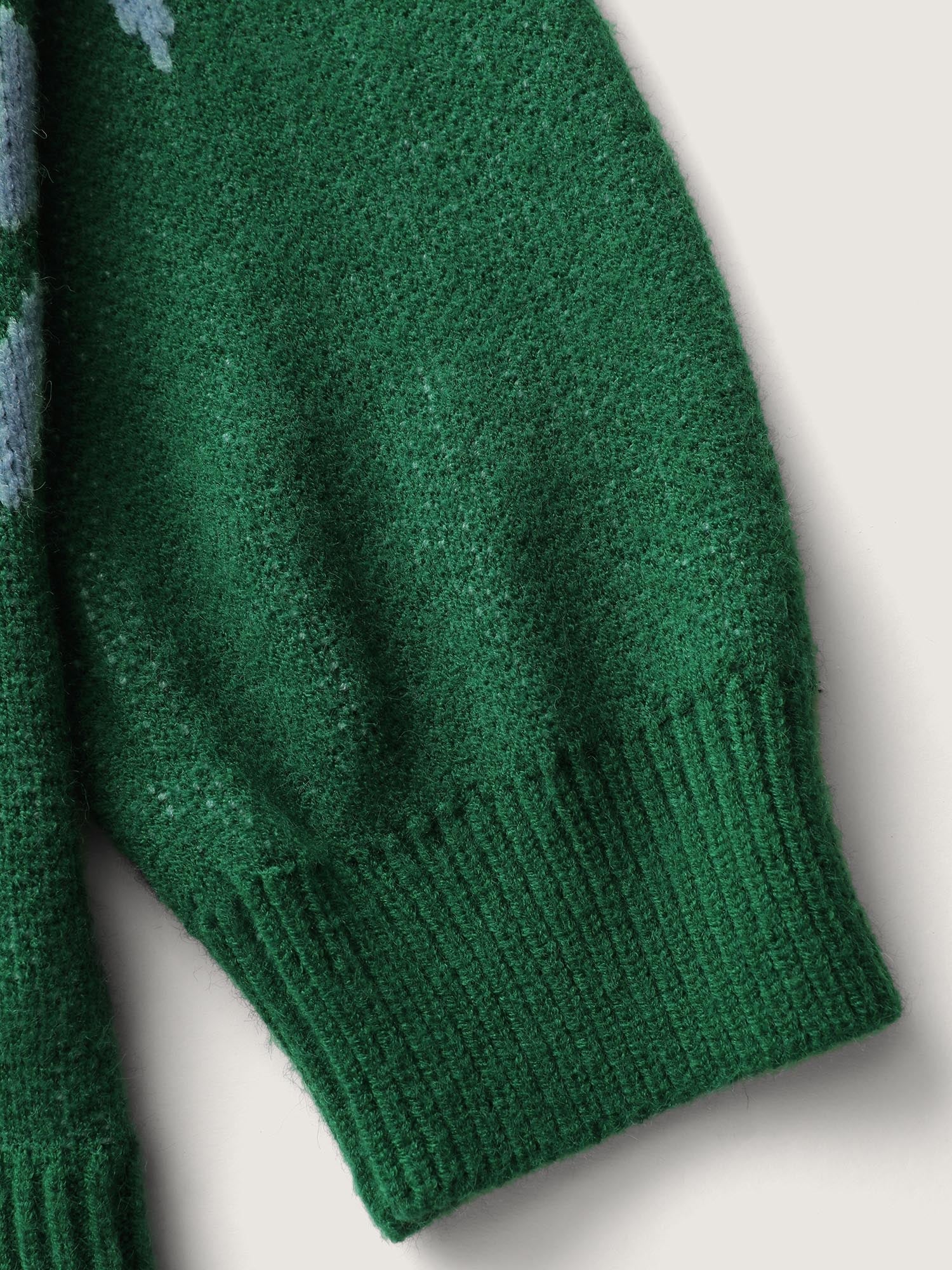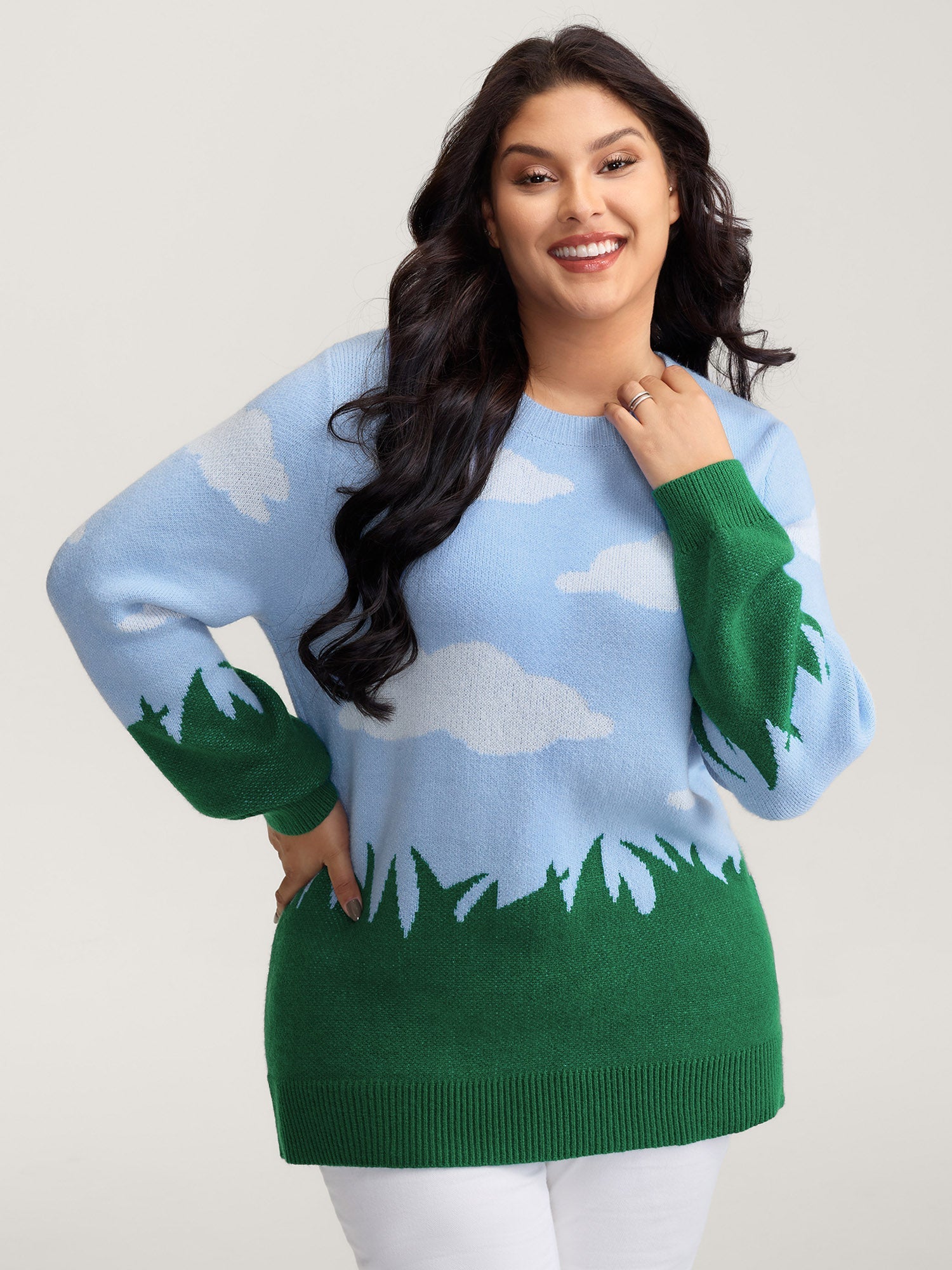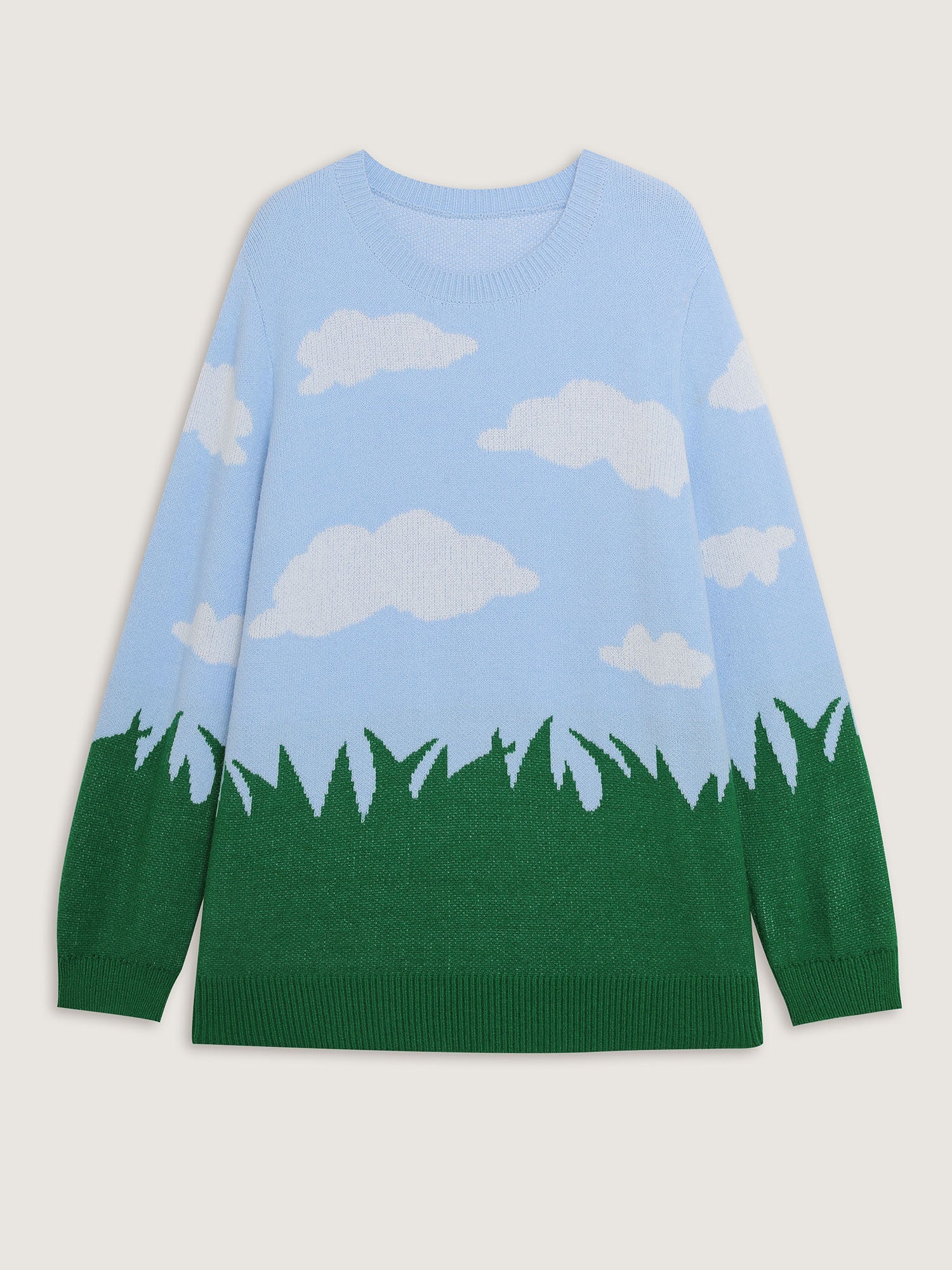 Cloudy Grass Print Jacquard Balloon Sleeve Pullover
