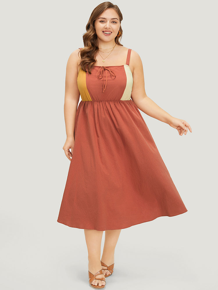 Color Block Contrast Pocket Flutter Hem Knot Cami Dress
