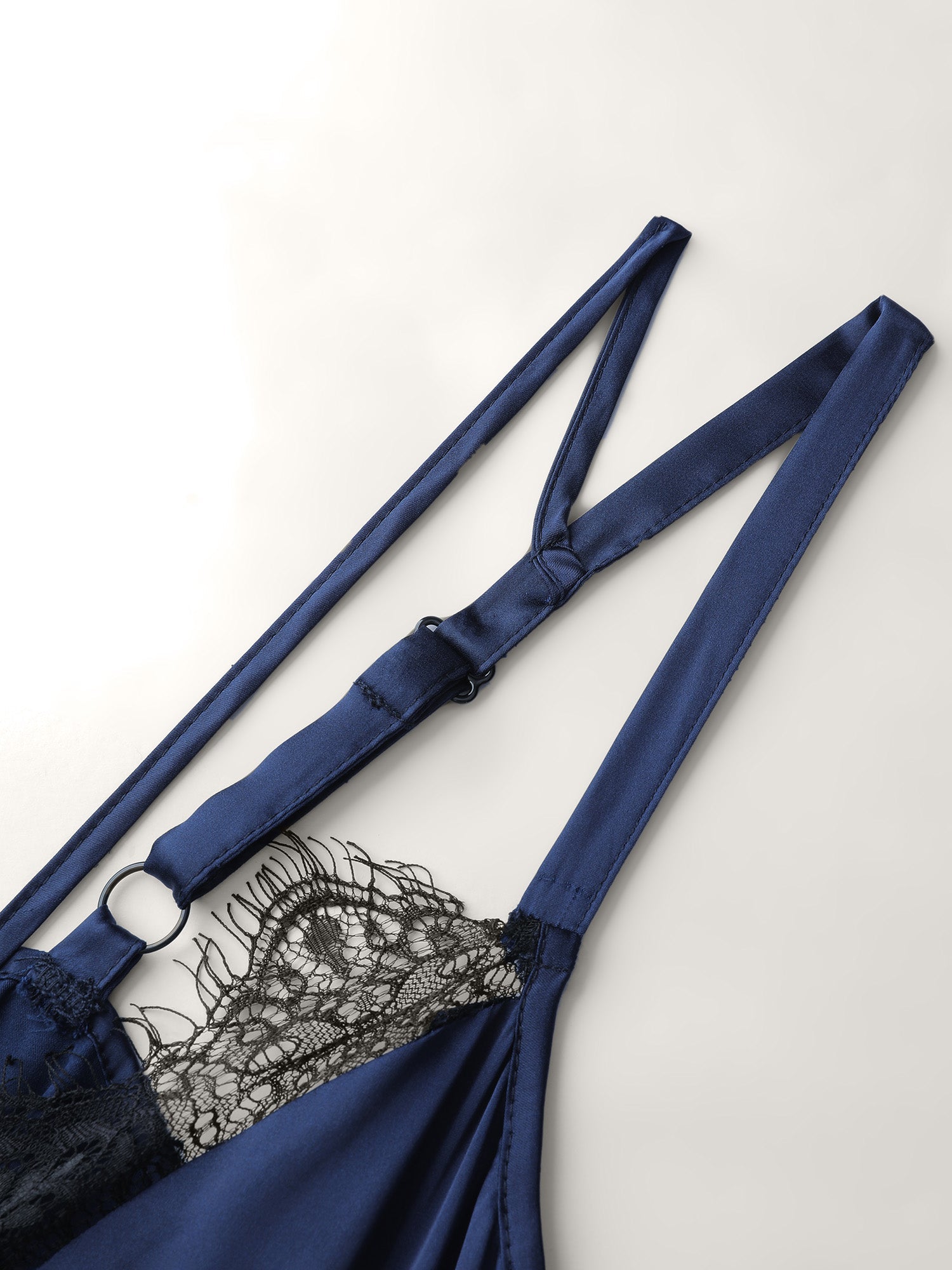 Color Contrast Lace Trim Deep Neck Sleep Dress