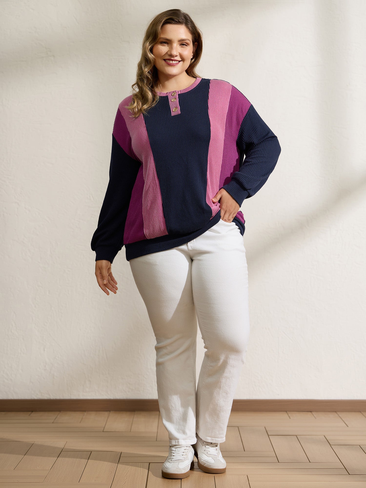 Color Contrast Relaxed Fit Spliced Sweatshirt