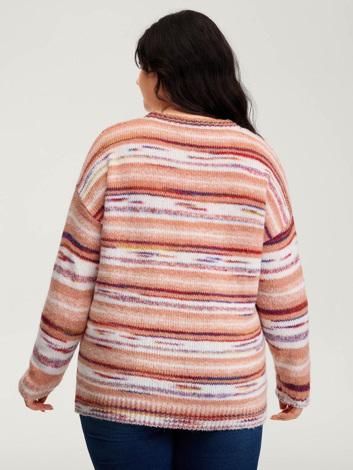 Color Gradient Stripe Crew Neck Pullover