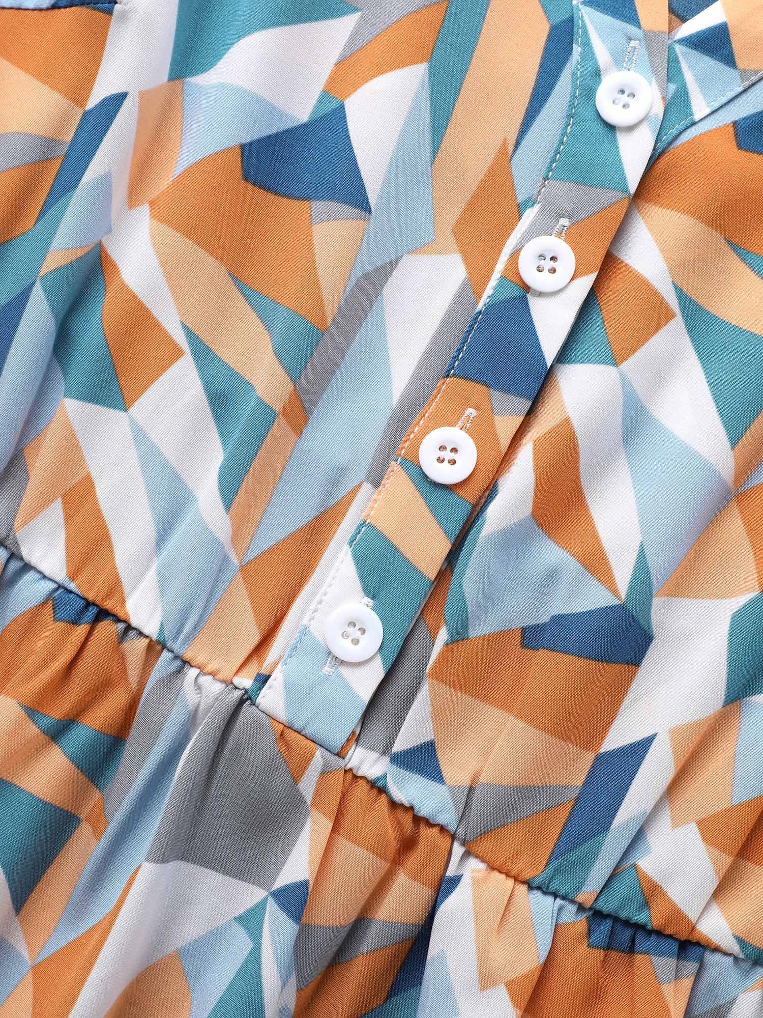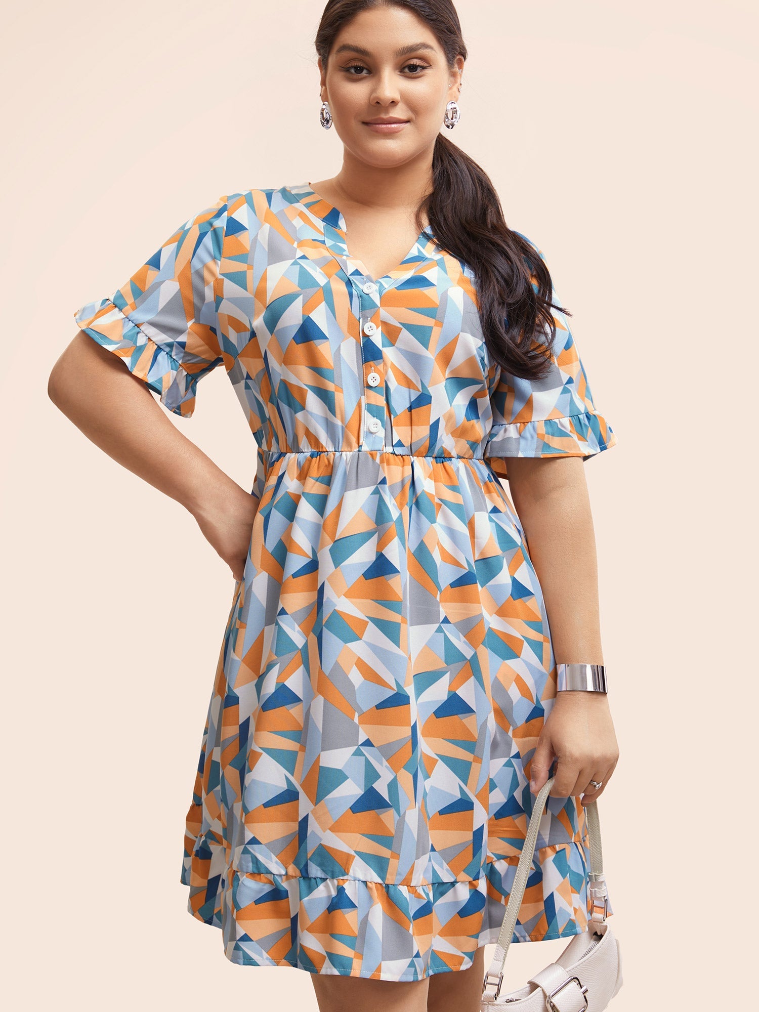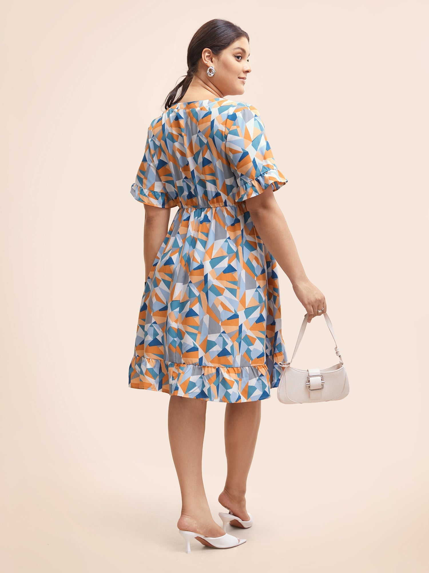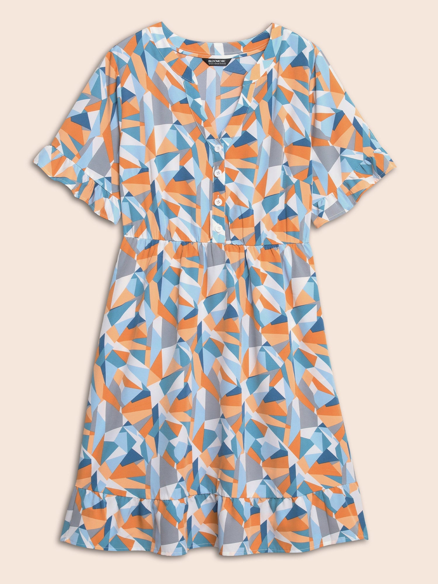 Colorblock Contrast Notched Ruffle Sleeve Dress