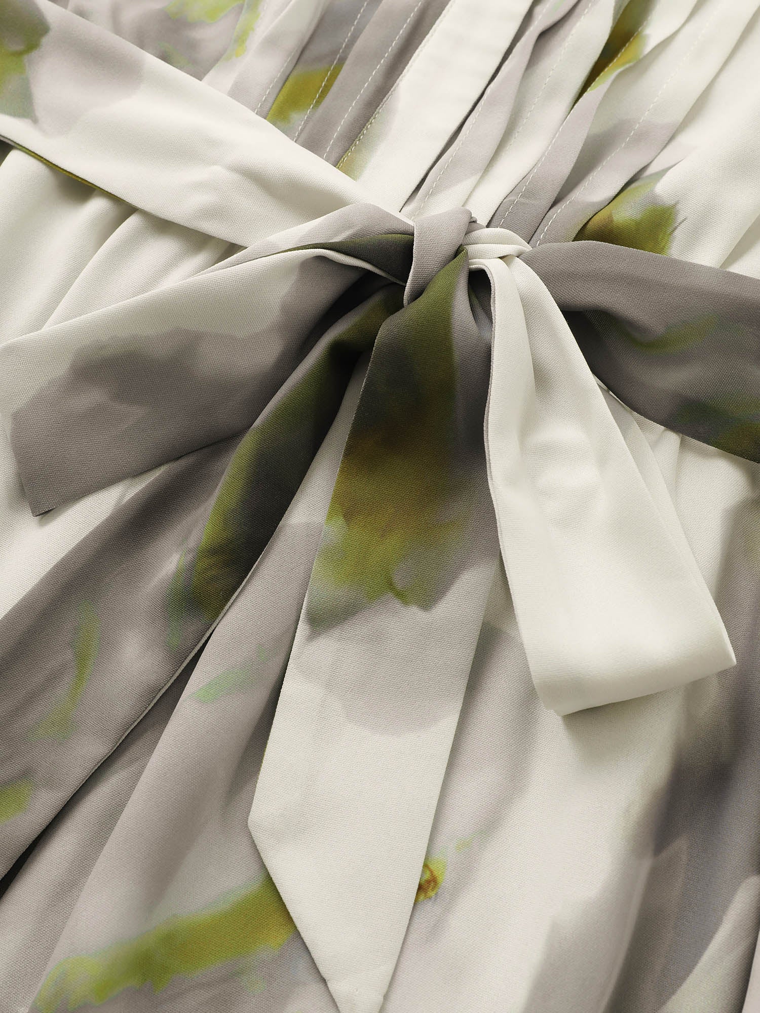 Colorblock Notched Pleated Belted Curved Hem Dress