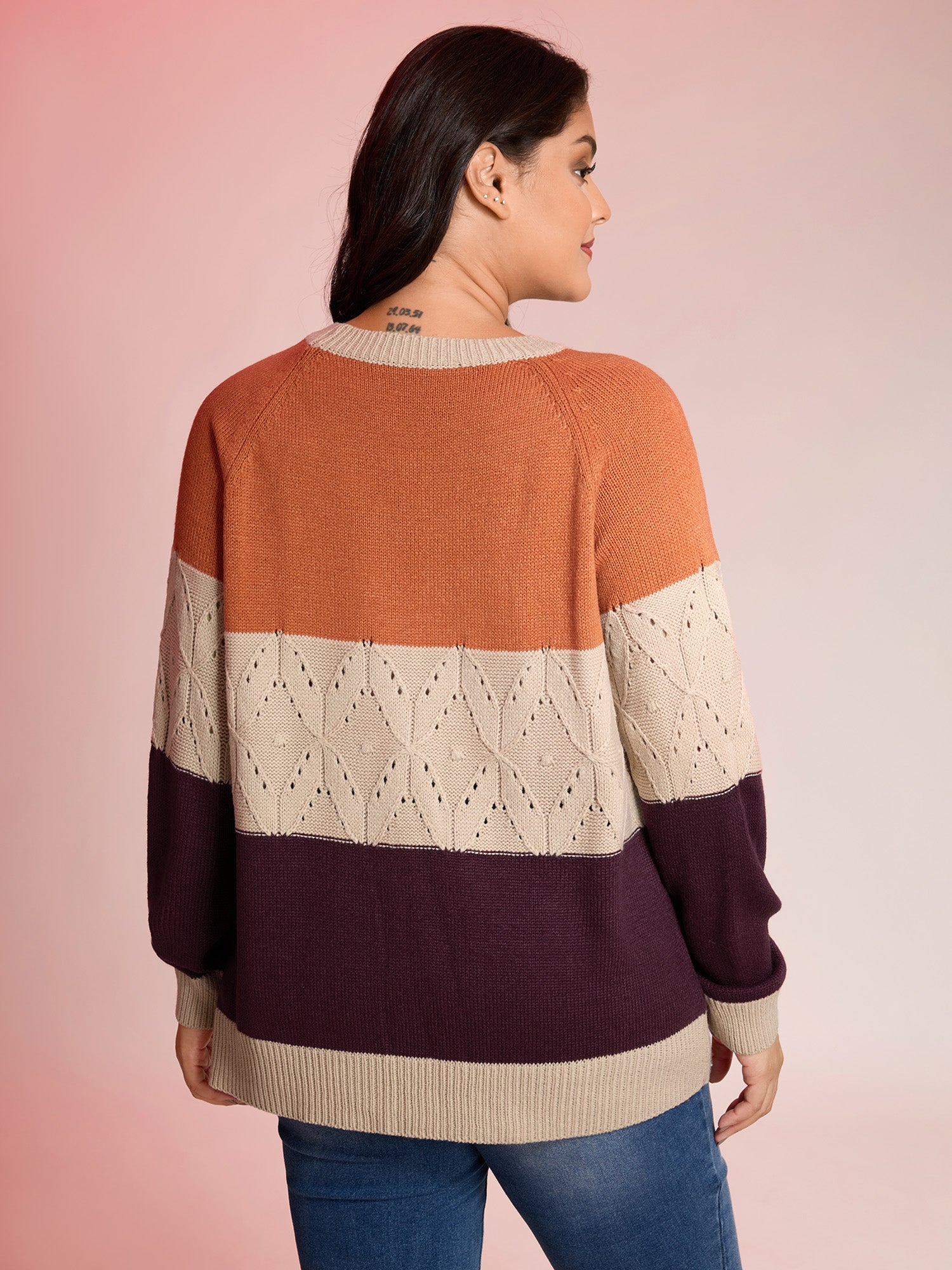 Colorblock Textured Ribbed Hem Pullover