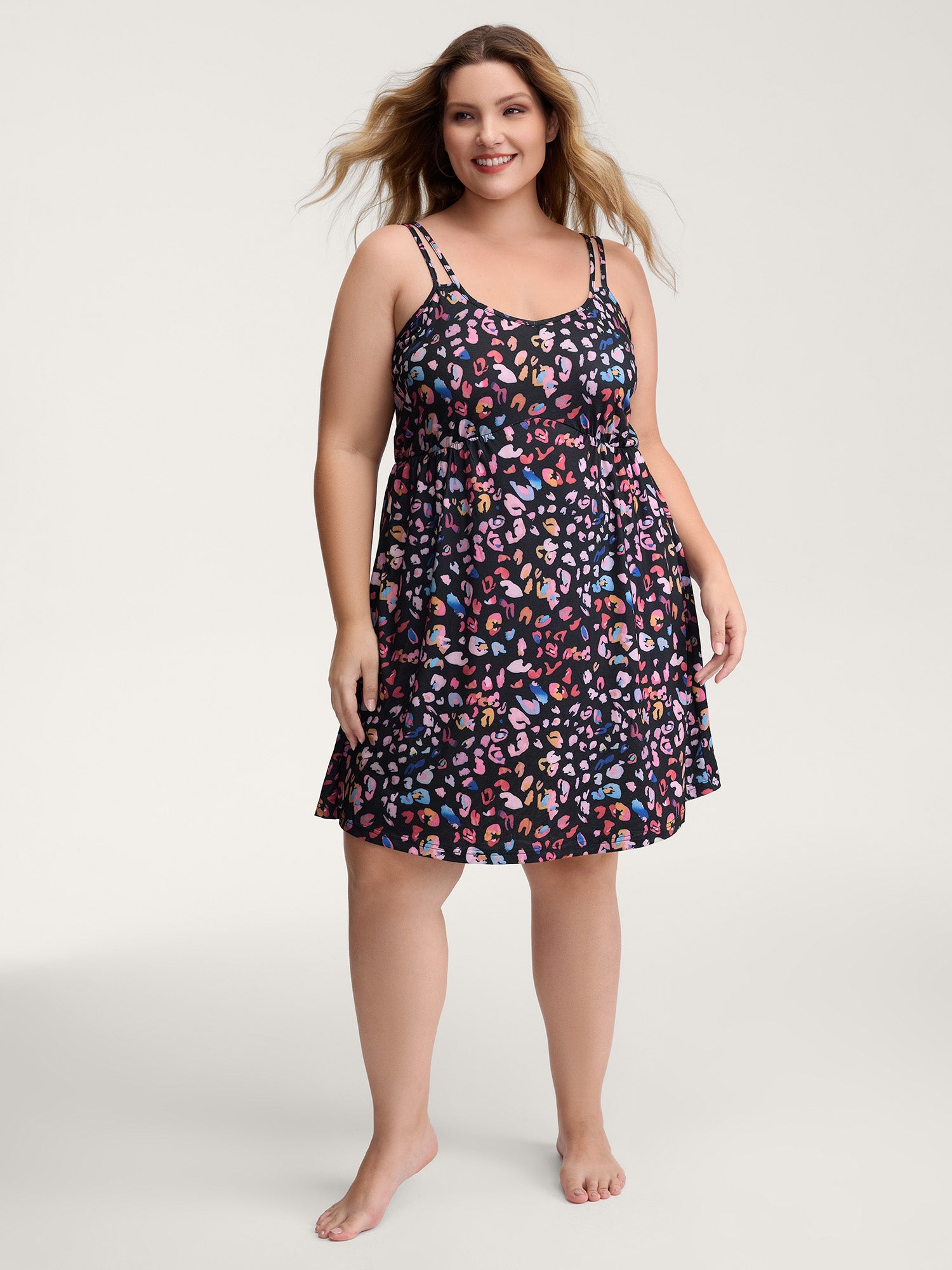 Colorful Leopard Print Double Strap Sleep Dress