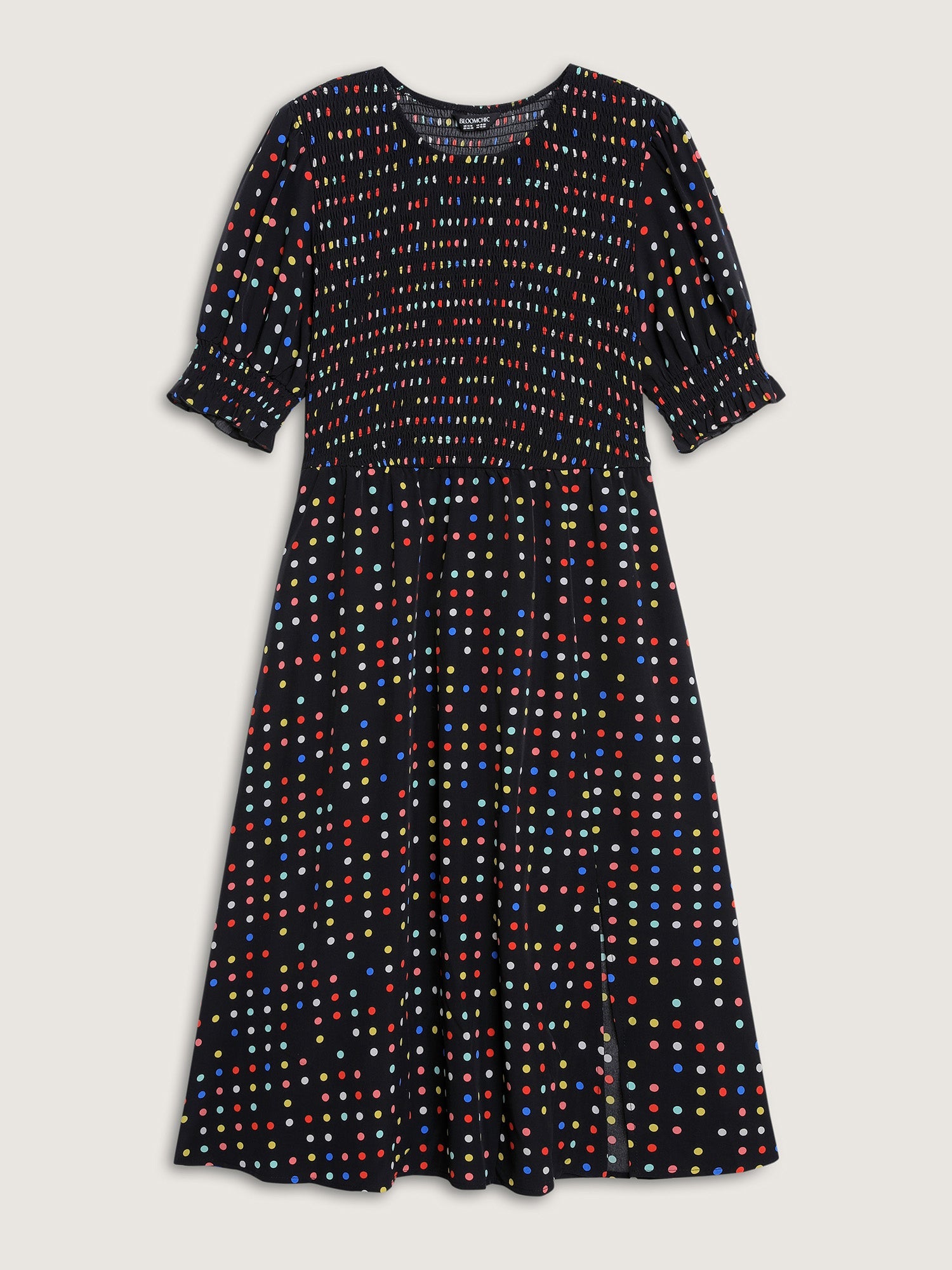 Colorful Polka Dots Shirred Bodice Midi Dress