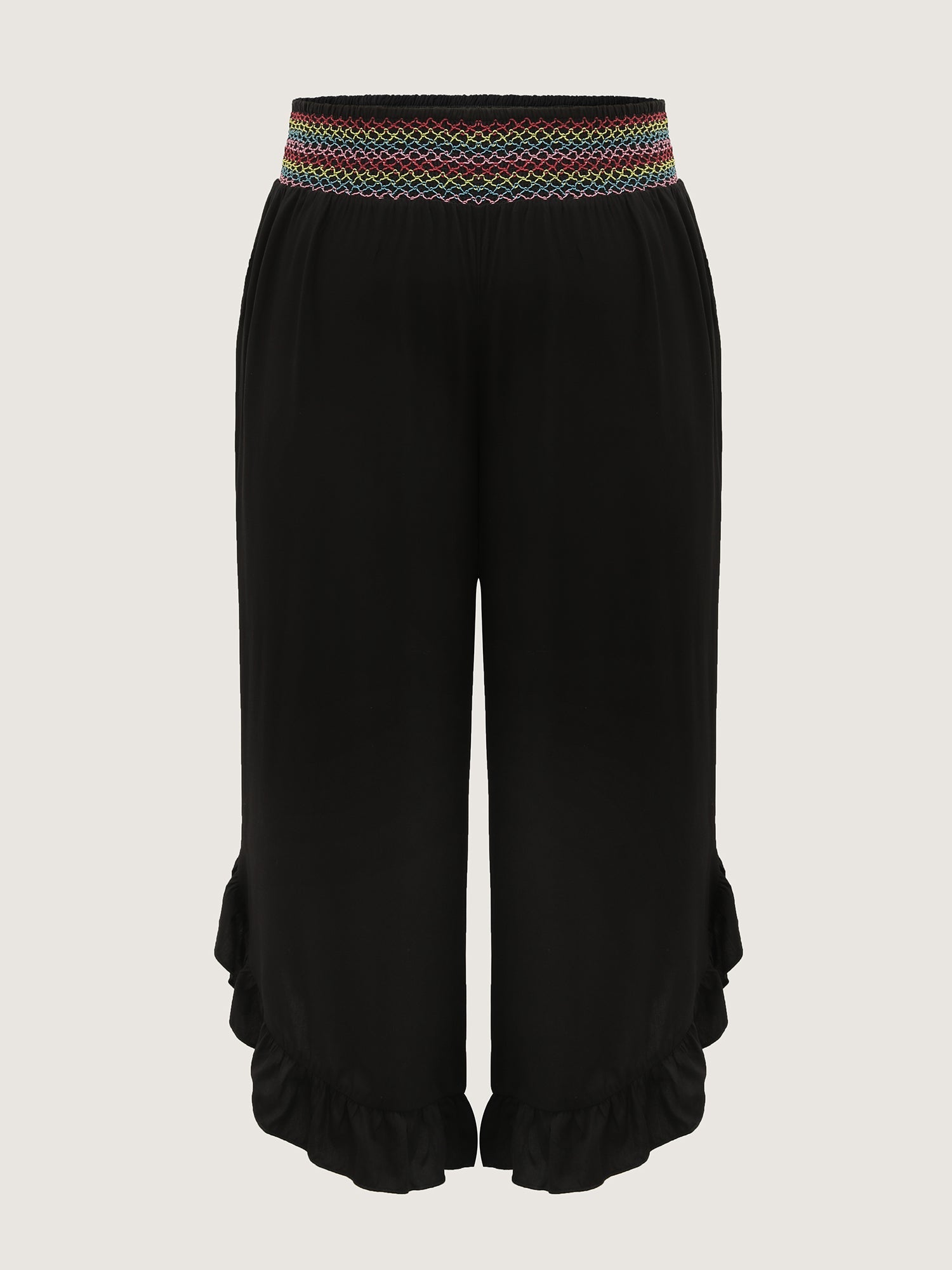 Colorful Shirred Waistband Ruffled Hem Pants