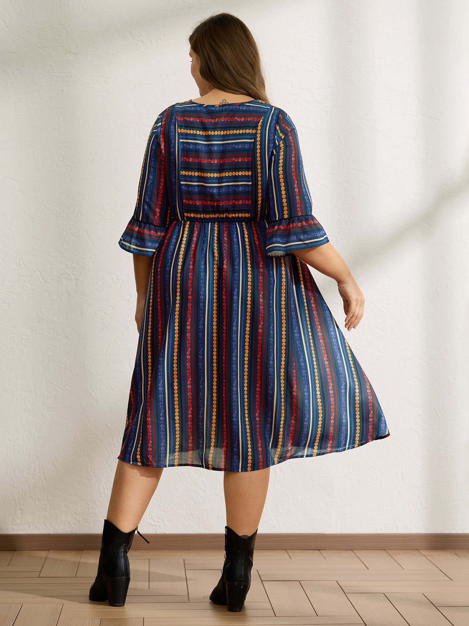Colorful Stripes Stretchy Waist Midi Dress