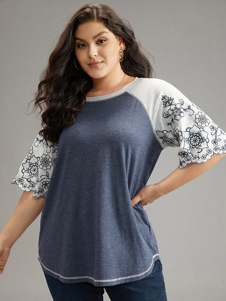 Contrast Embroidered Scalloped Trim T-shirt