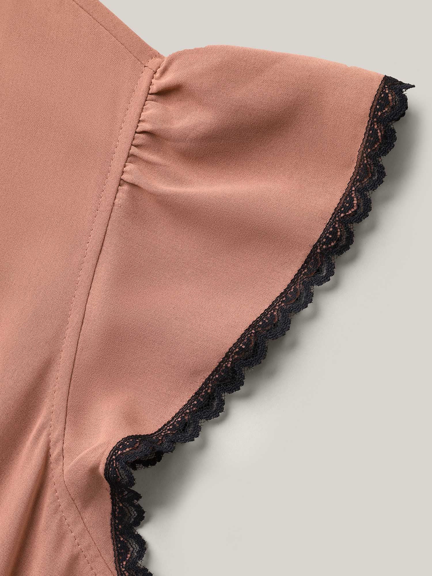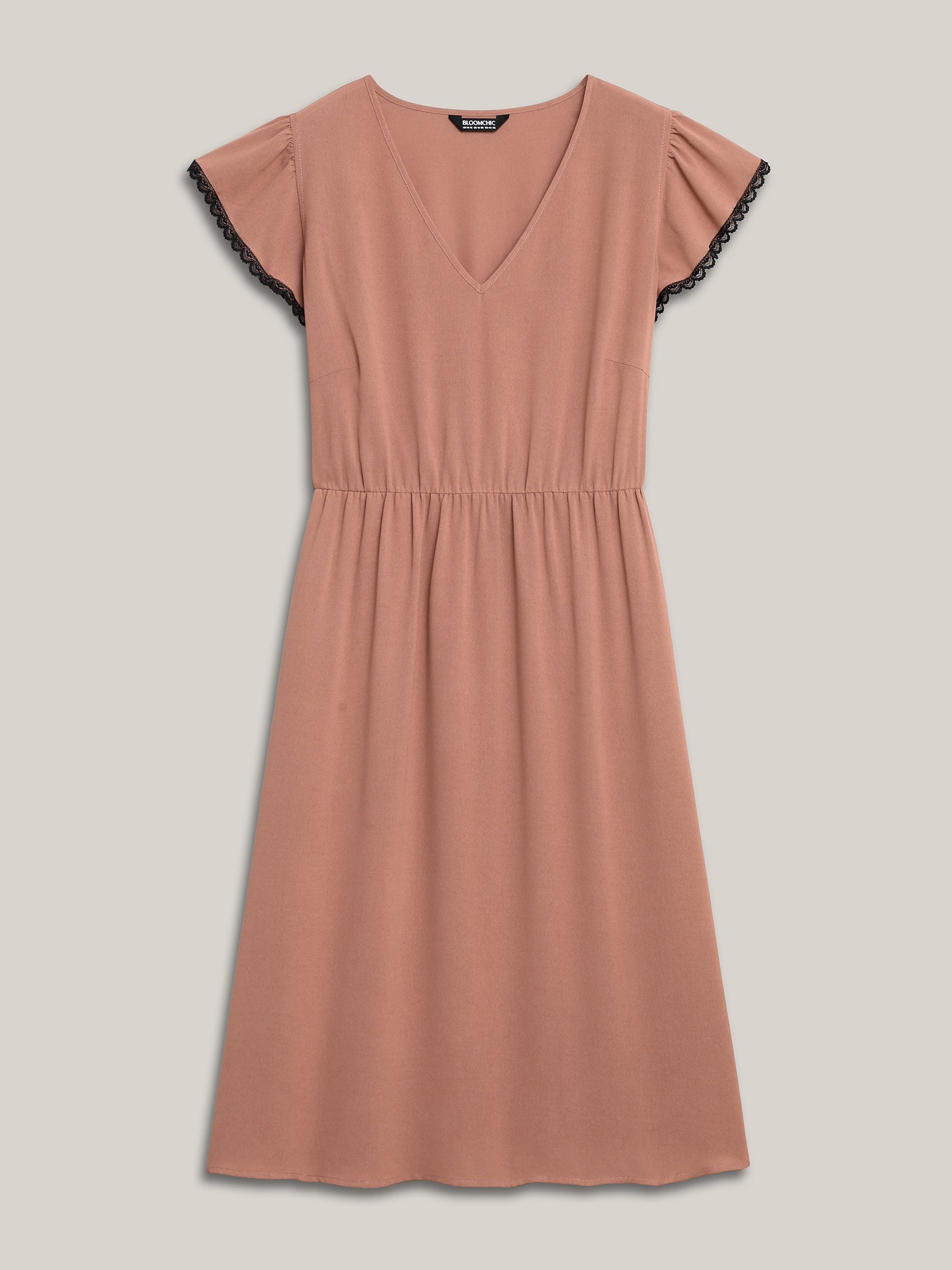 Contrast Lace Flutter Sleeve Breezy Midi Dress