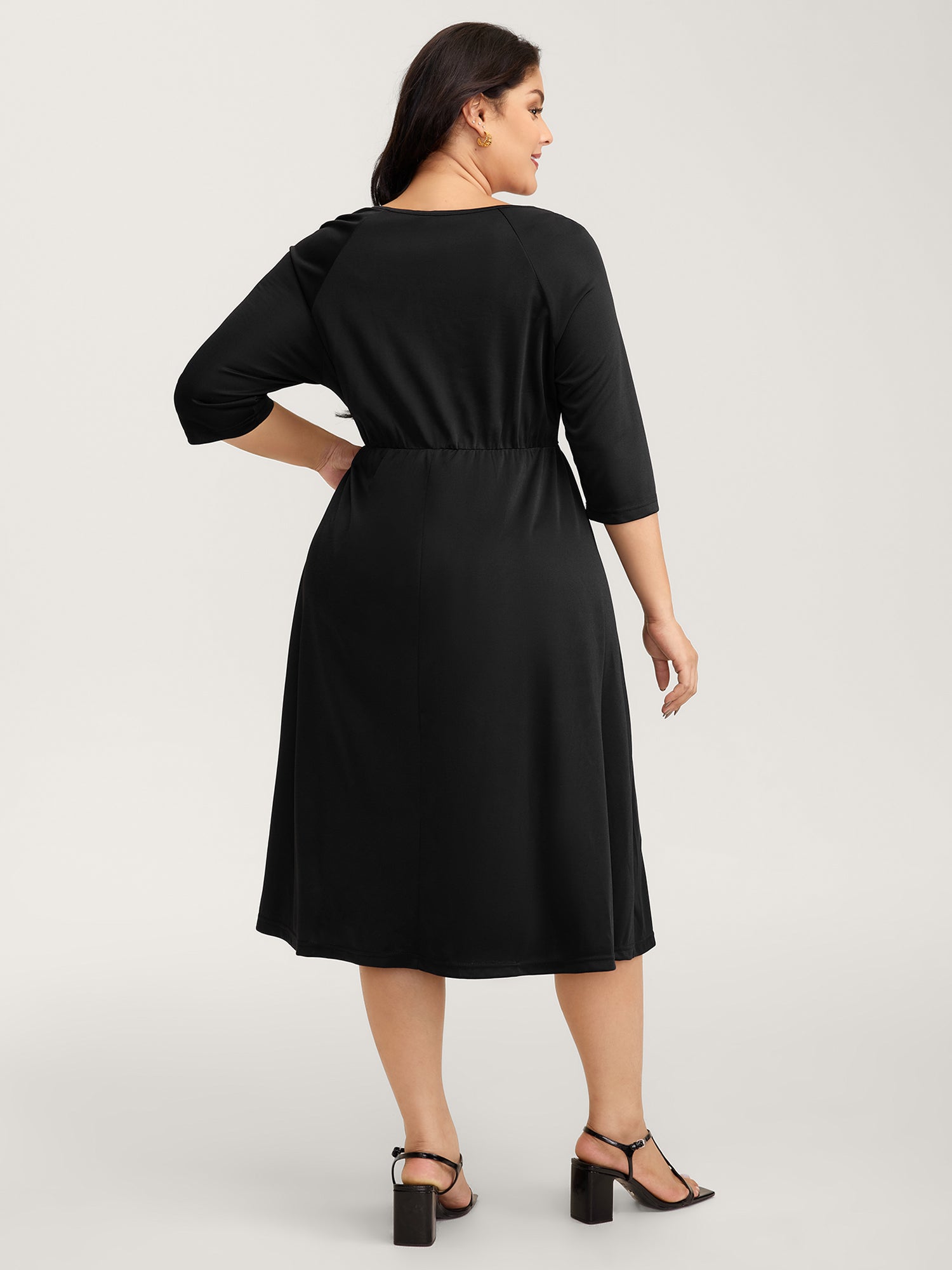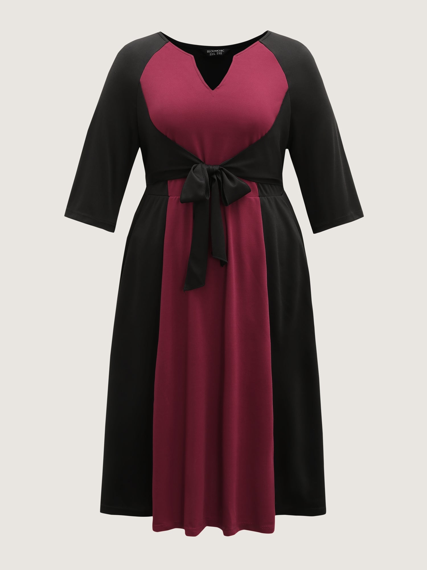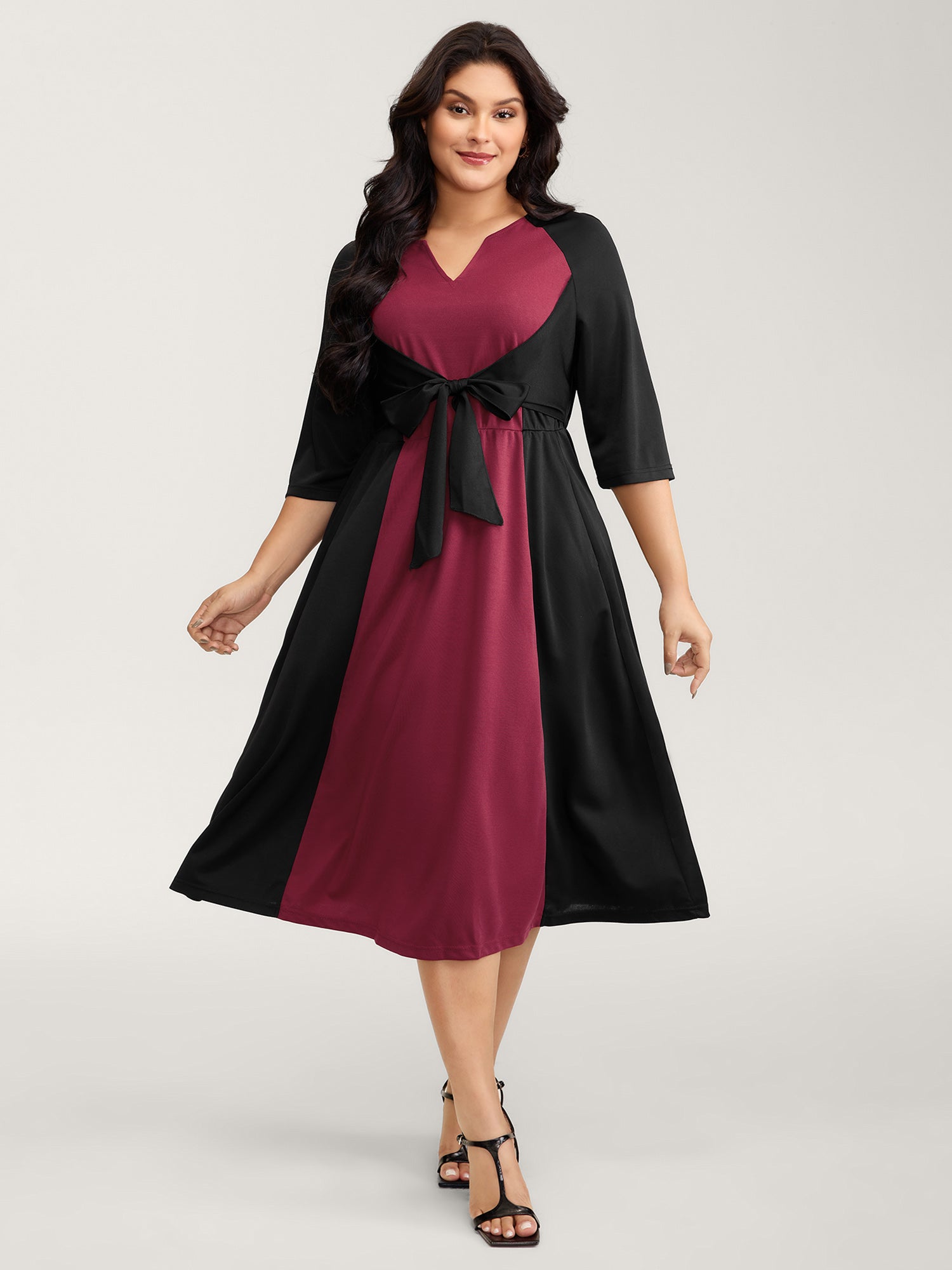 Contrast Stretchy Cinched-Waist Midi Dress