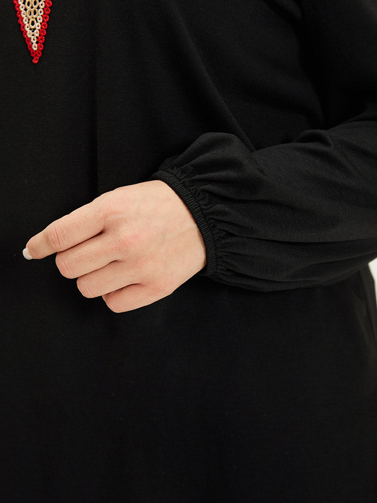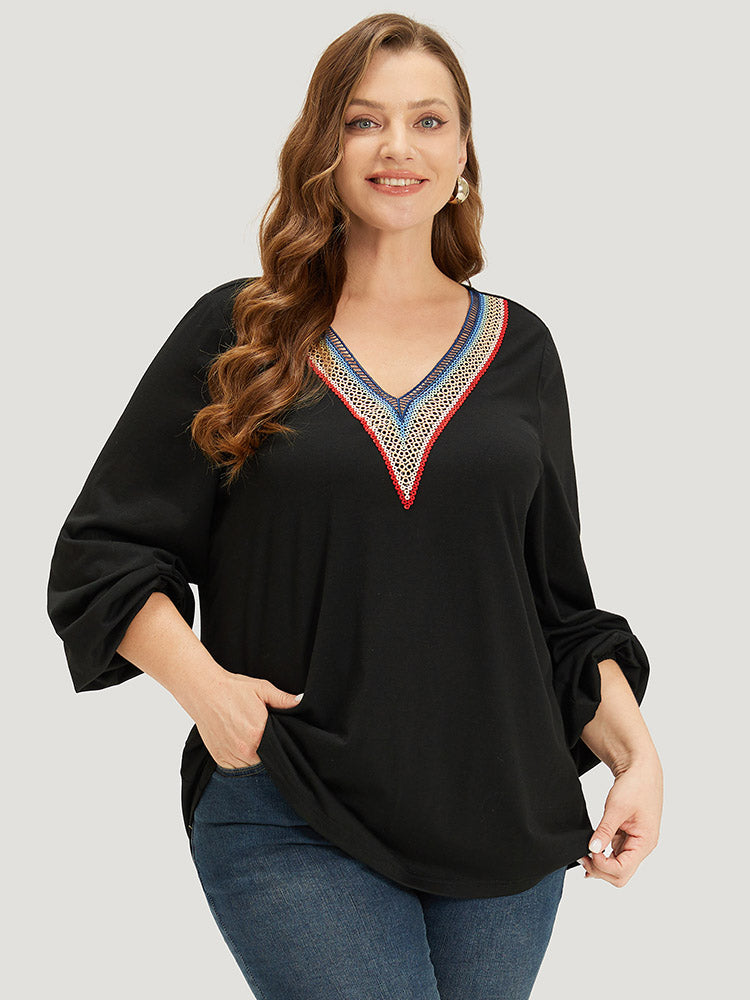 Contrast Webbing V Neck Elastic cuffs T-shirt
