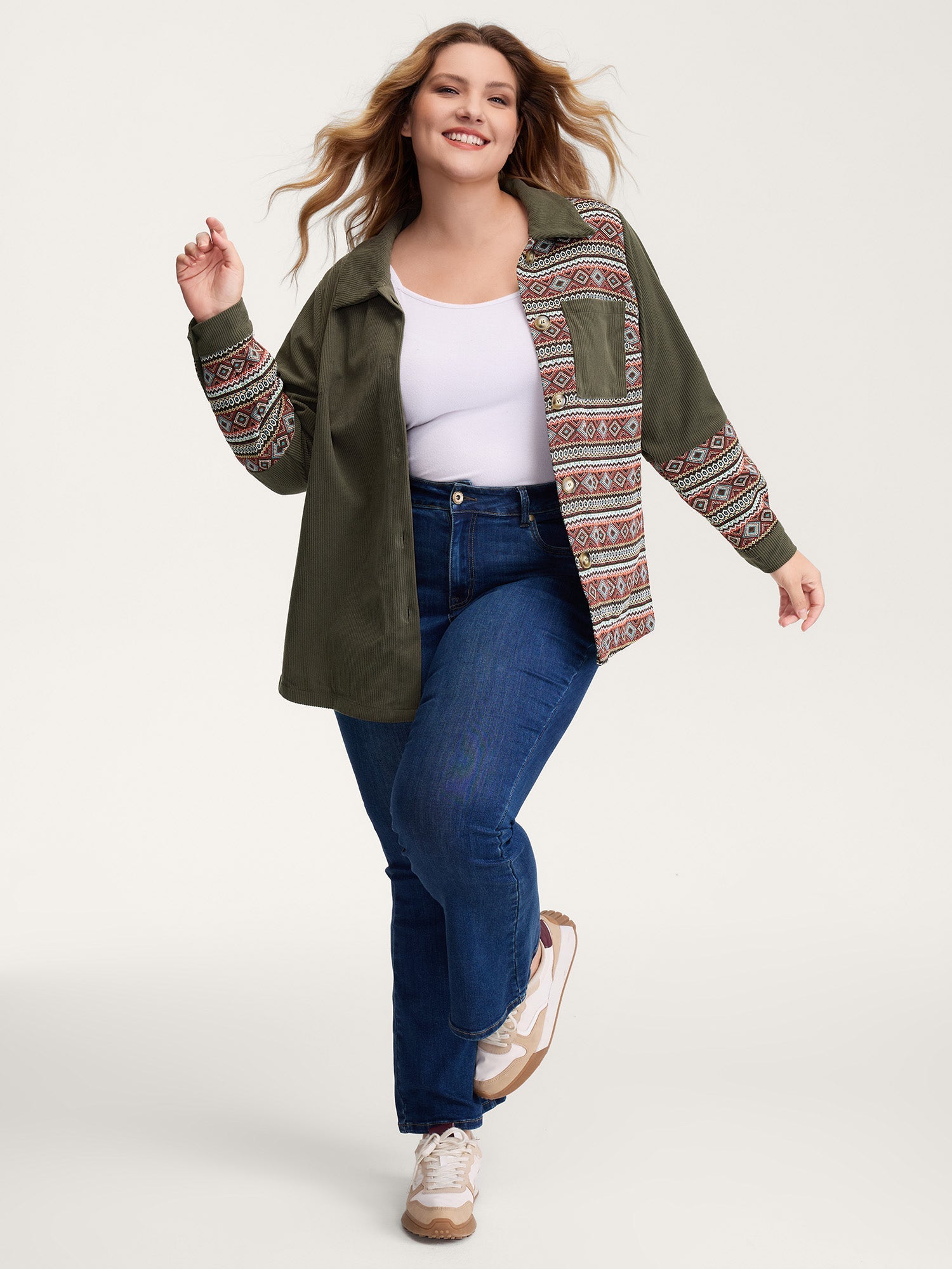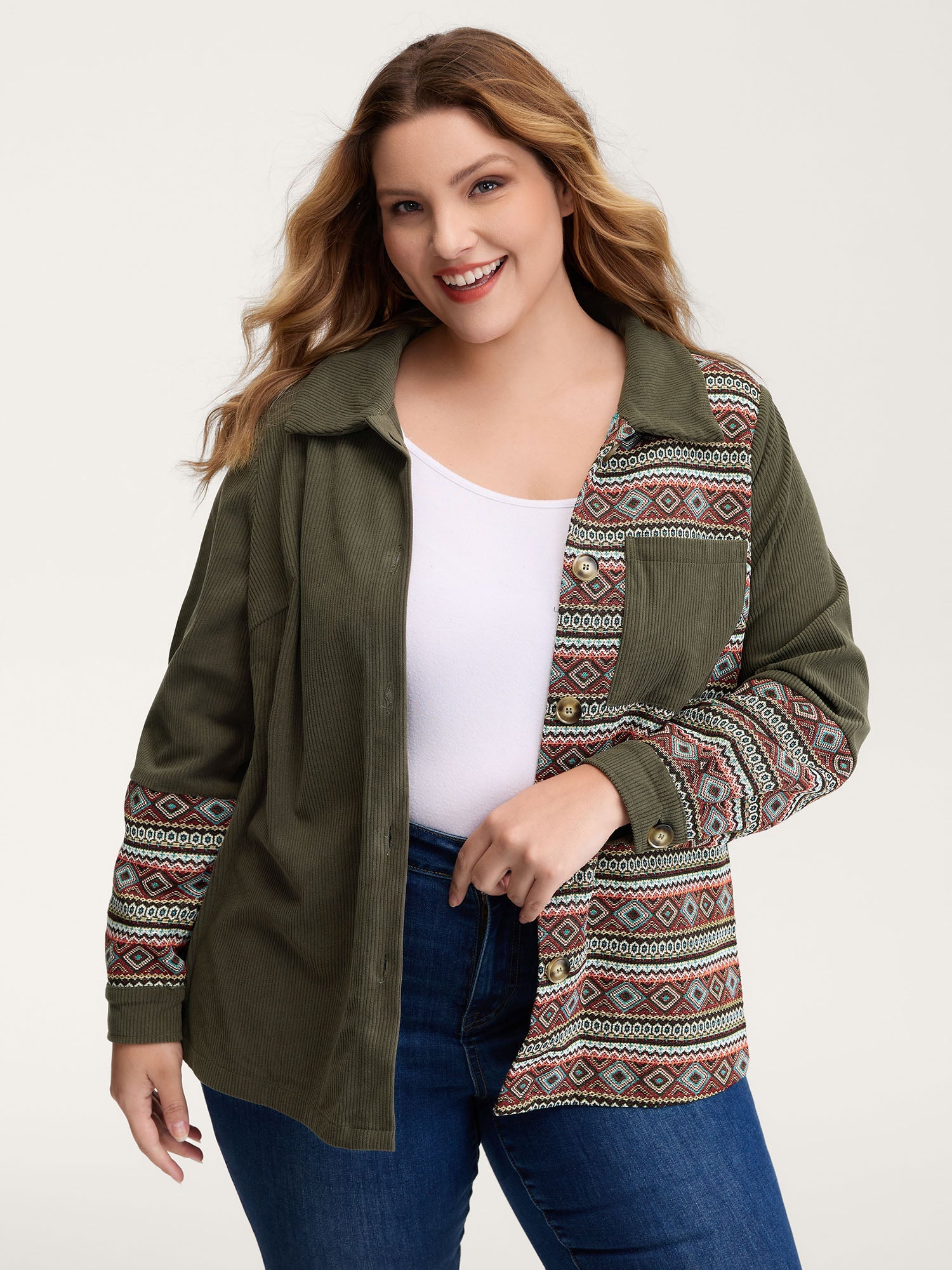 Corduroy Spliced Yarn-Dyed Contrast Jacket