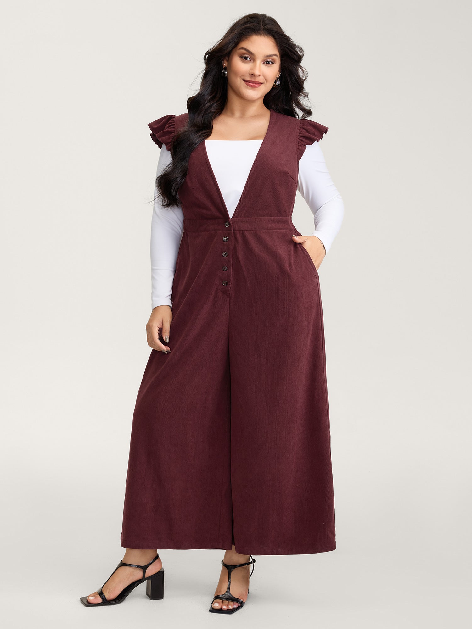 Corduroy Stretchy Waist Flutter Sleeve Jumpsuit