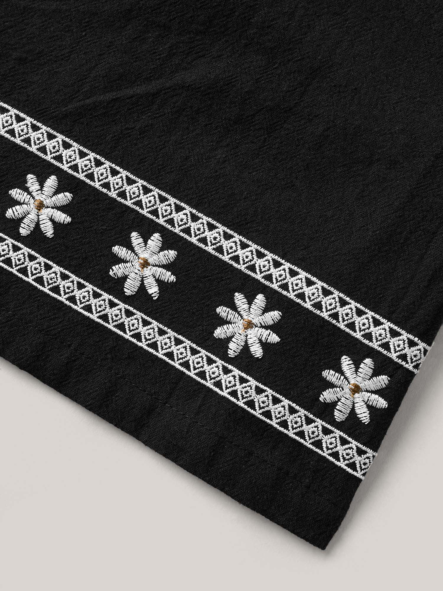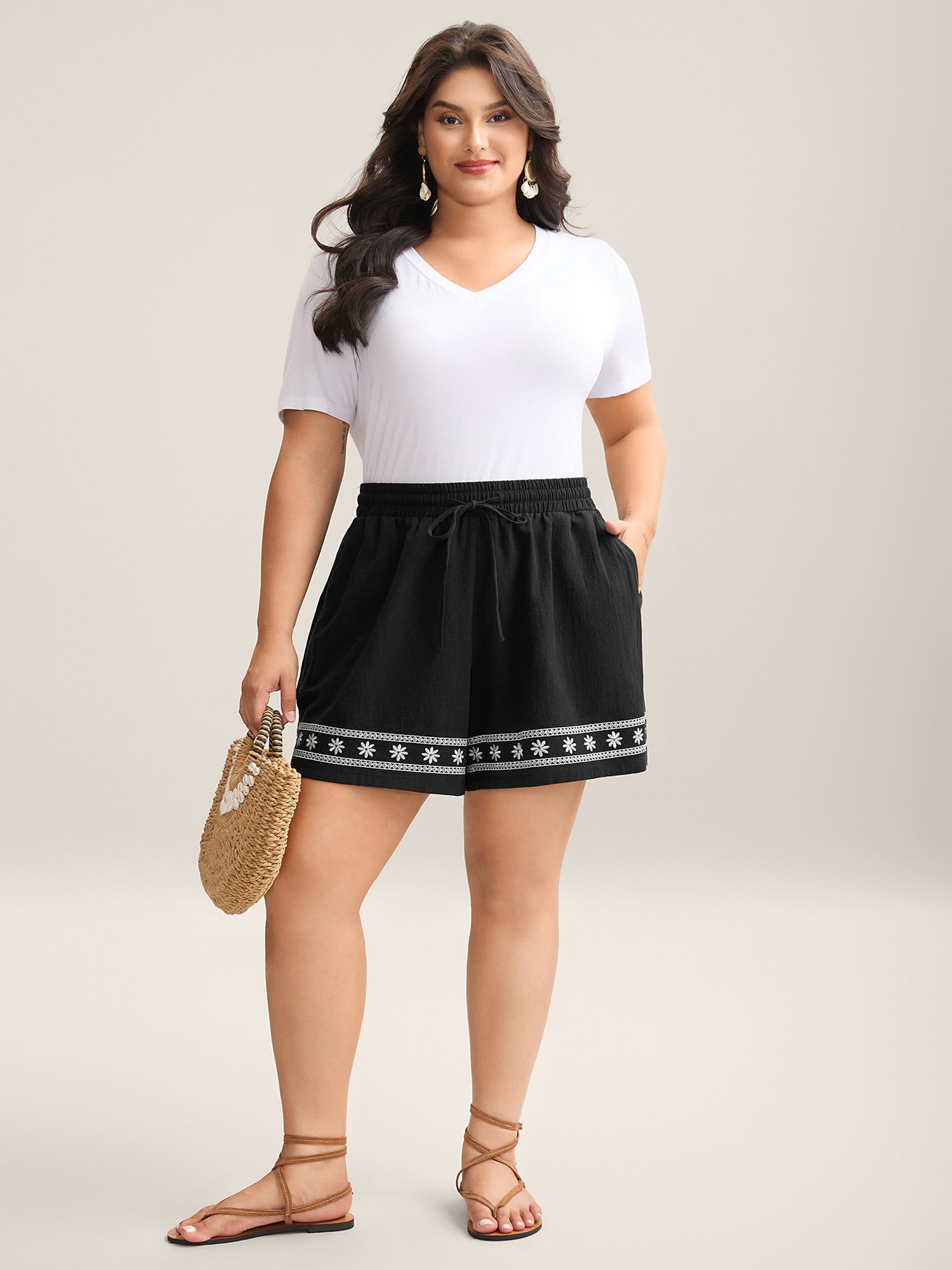 Cotton Embroidery Waist-Tie Straight-Fit Shorts