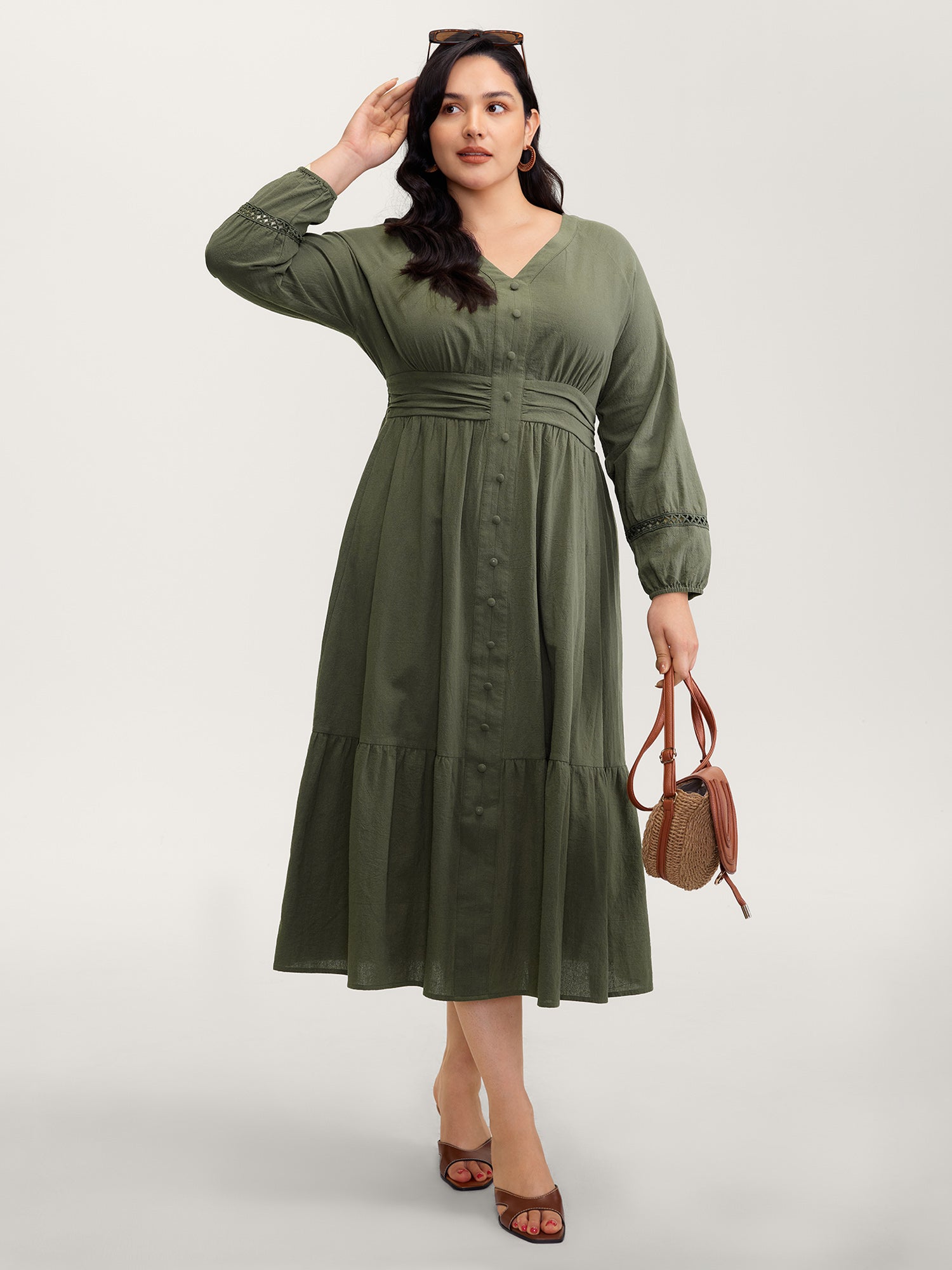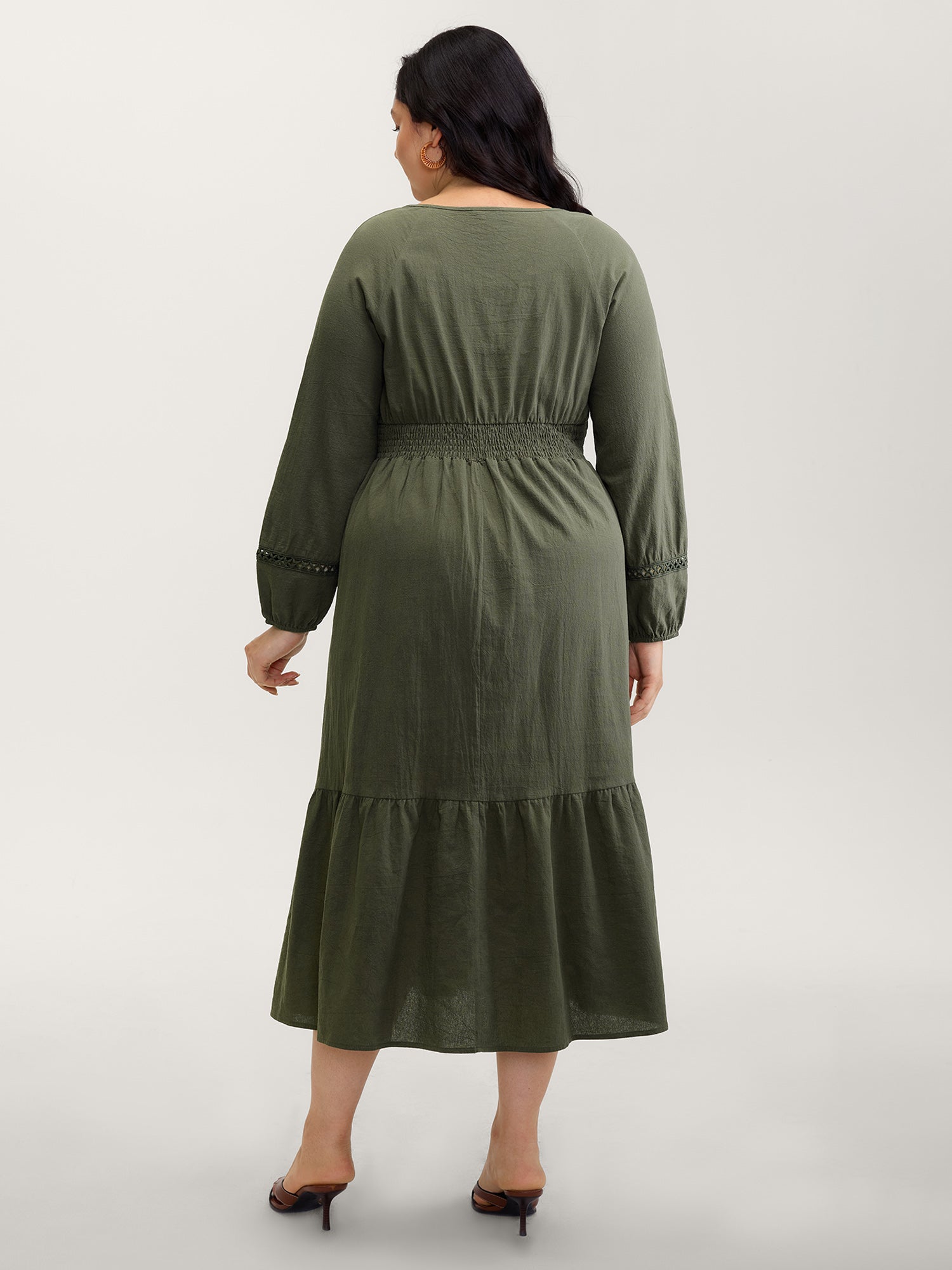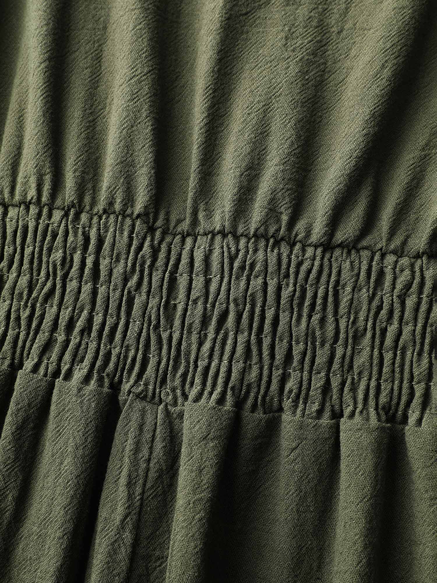 Cotton Pockets Shirred Waist Tiered Maxi Dress