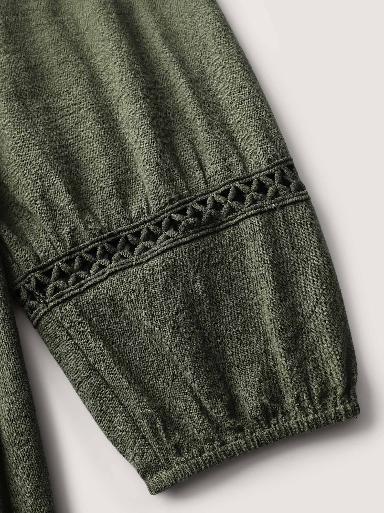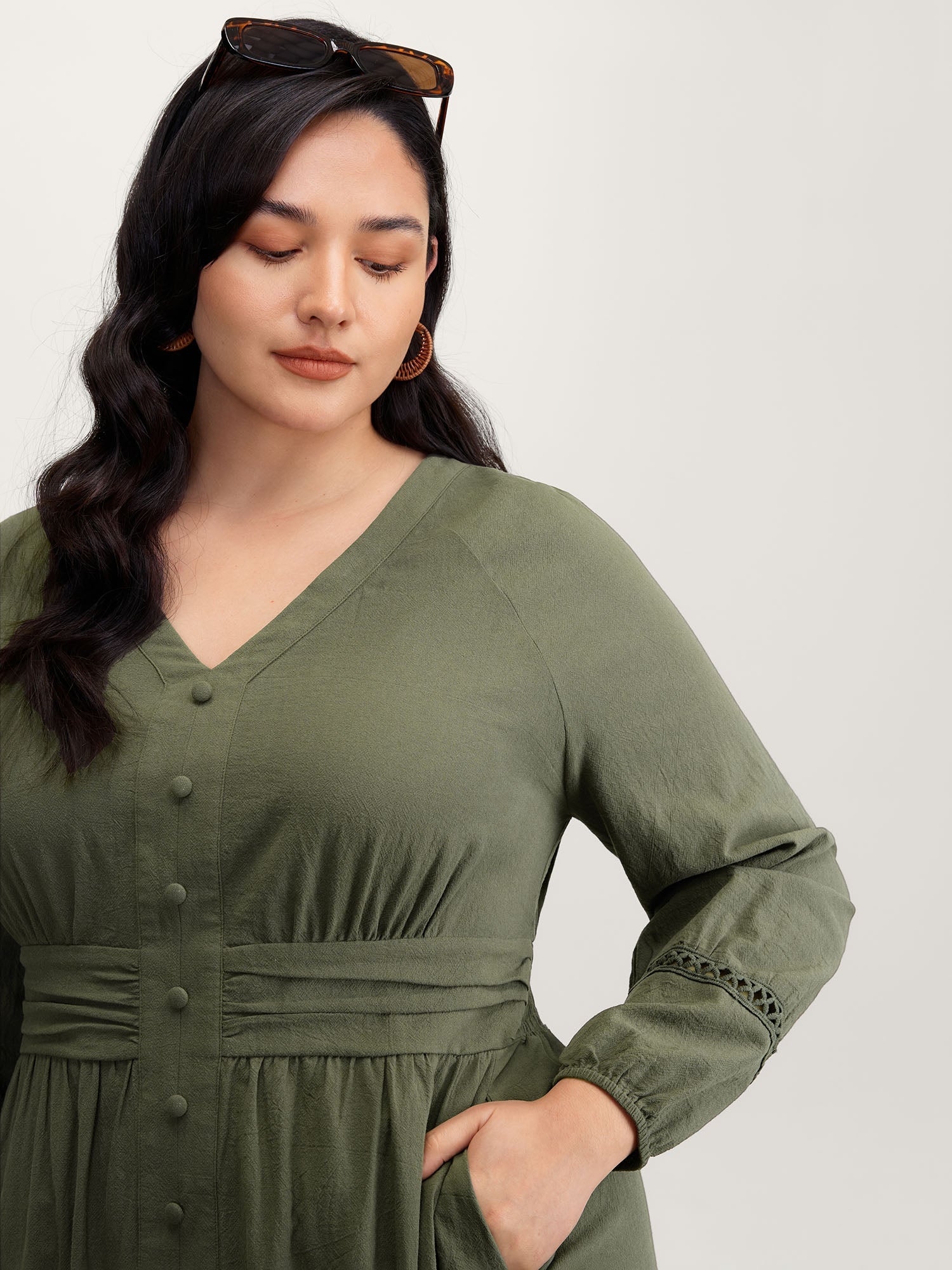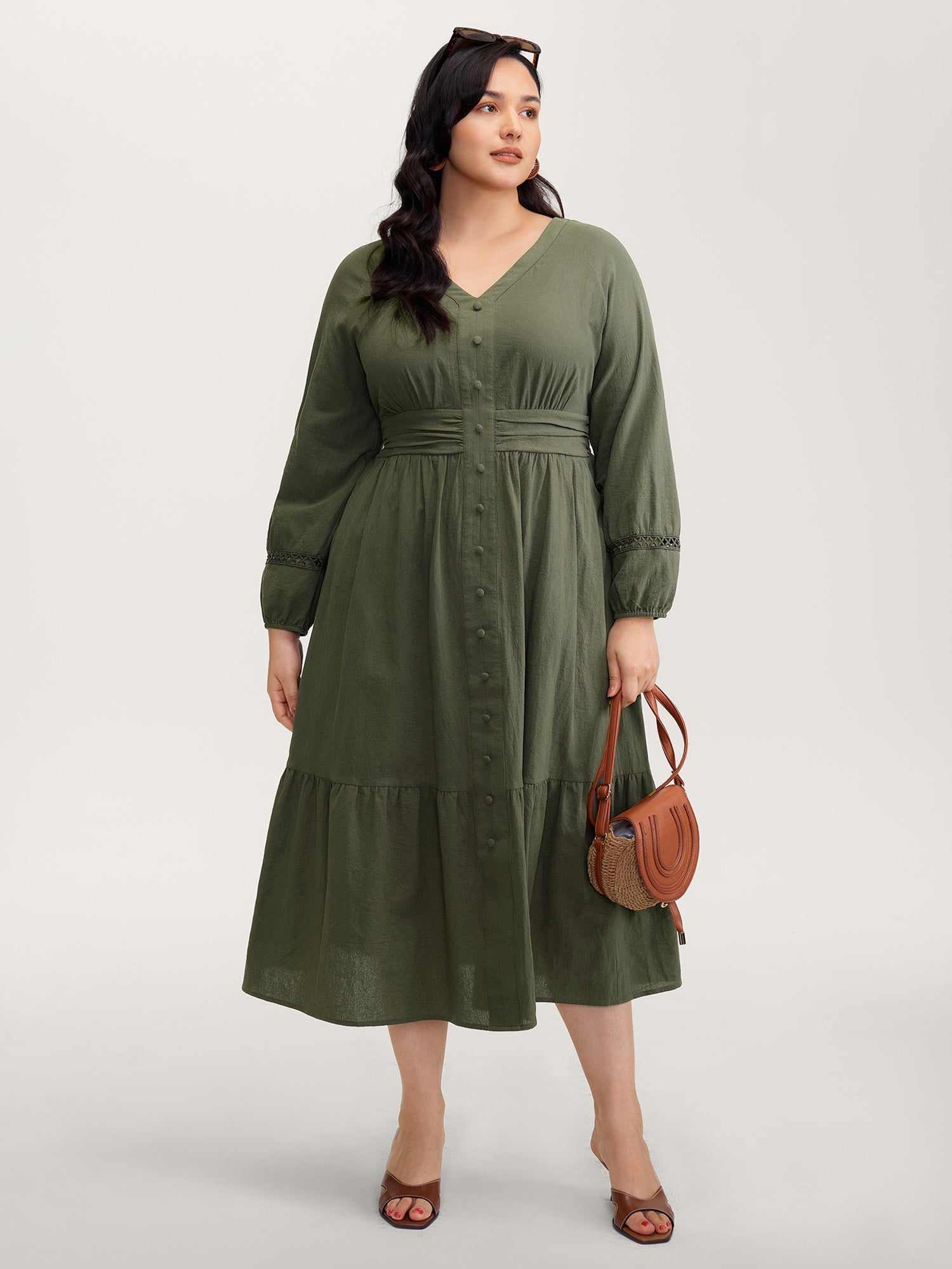 Cotton Pockets Shirred Waist Tiered Maxi Dress