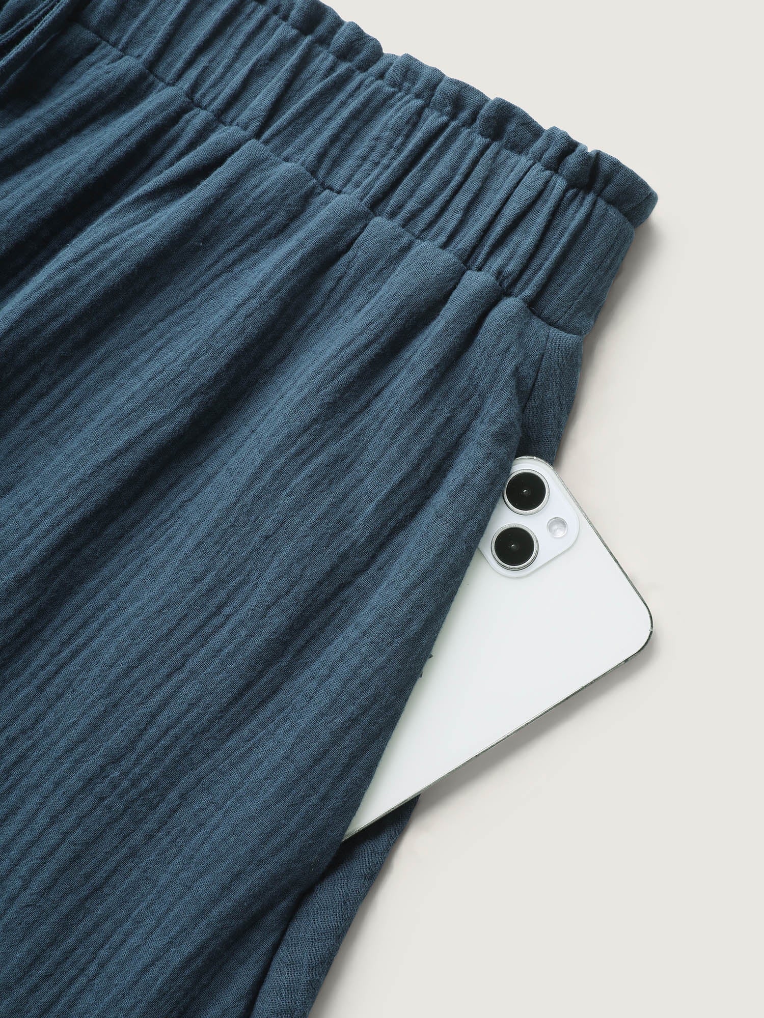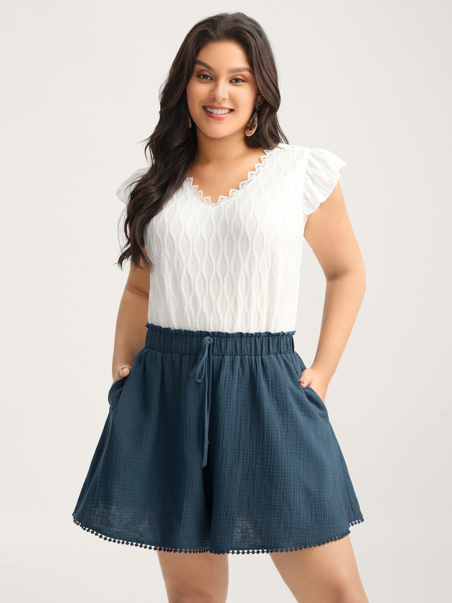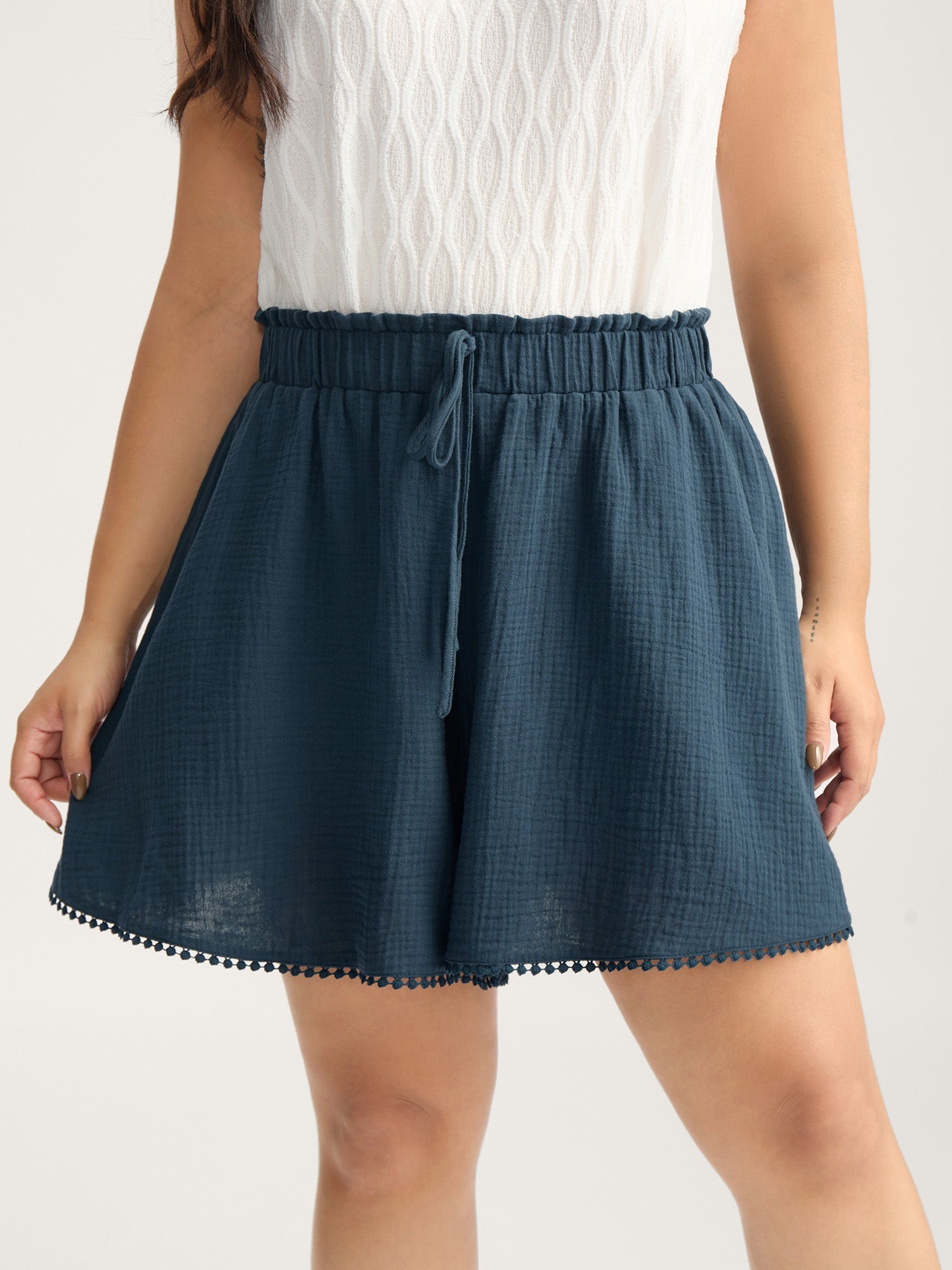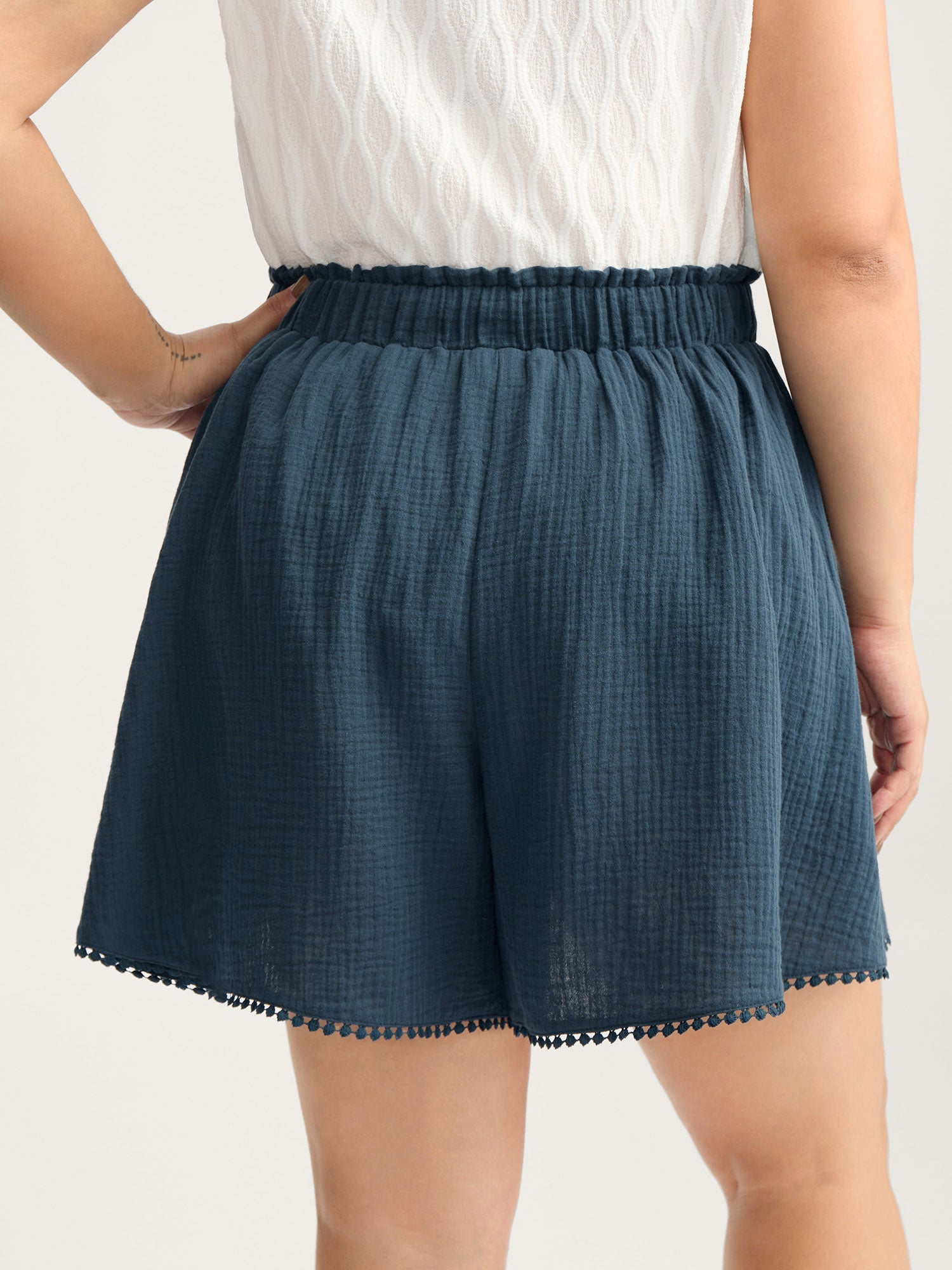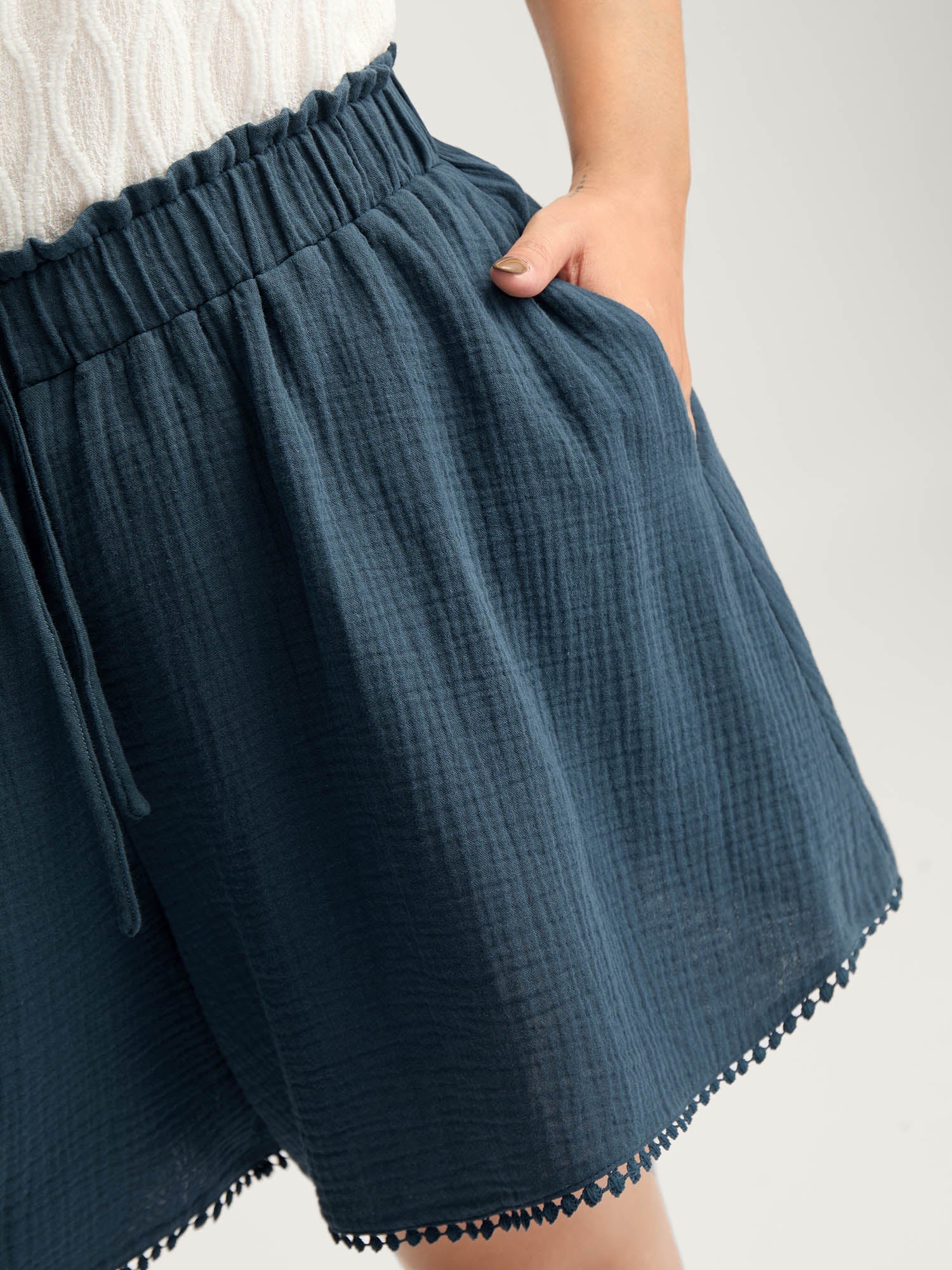 Cotton Textured Waist Tie Wide-Leg Shorts