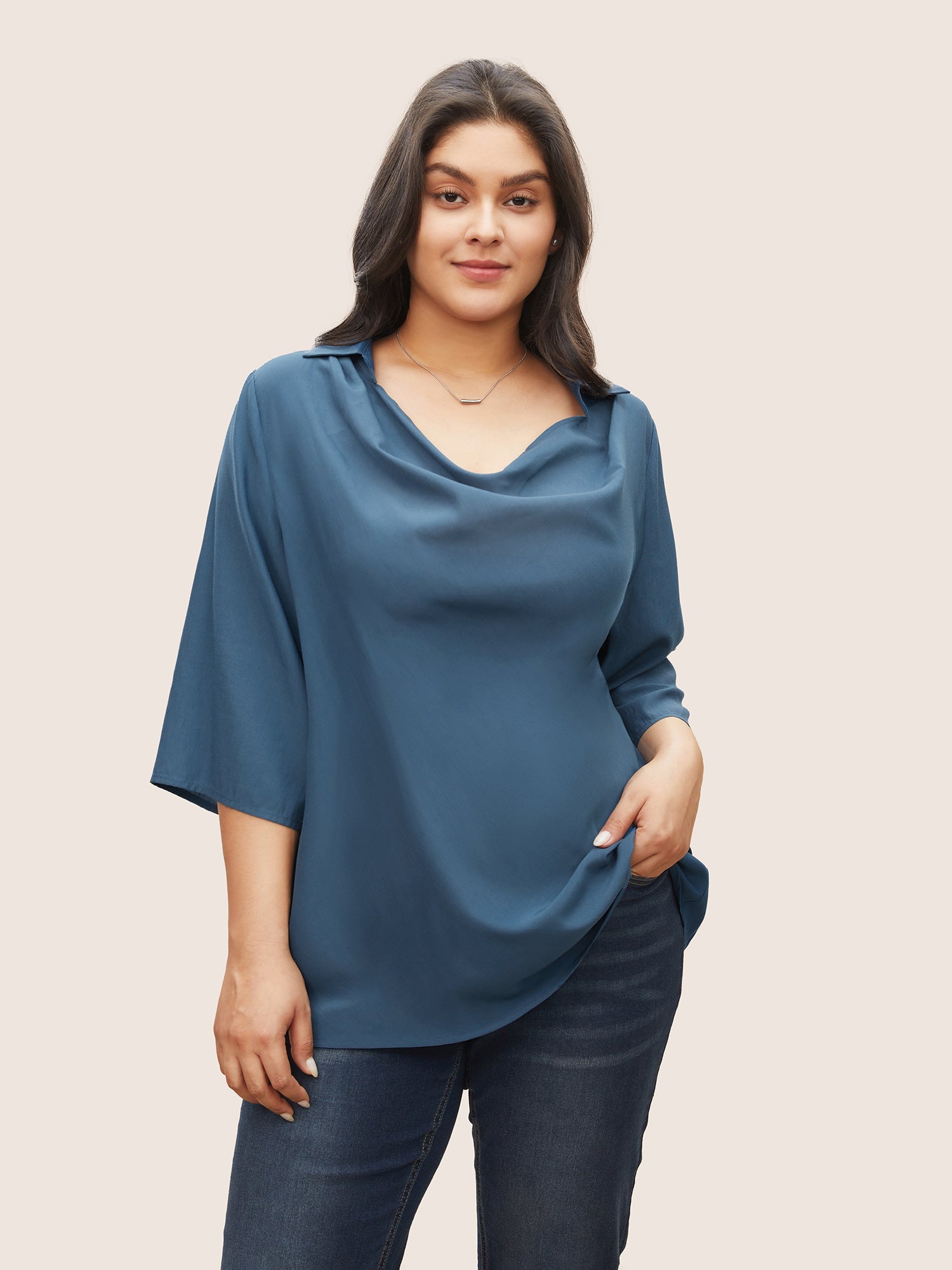 Cowl Neck Plain Bell Sleeve Blouse