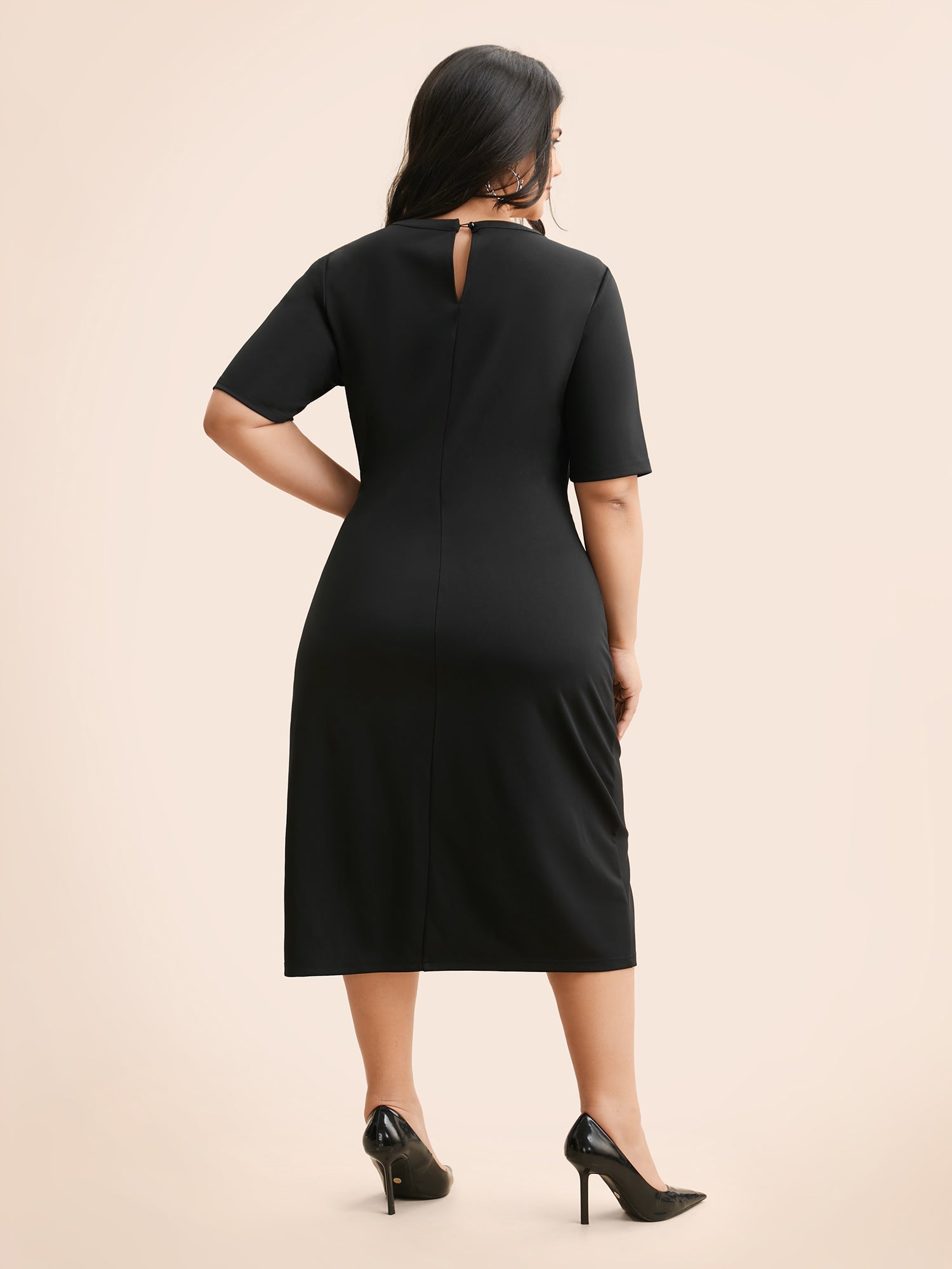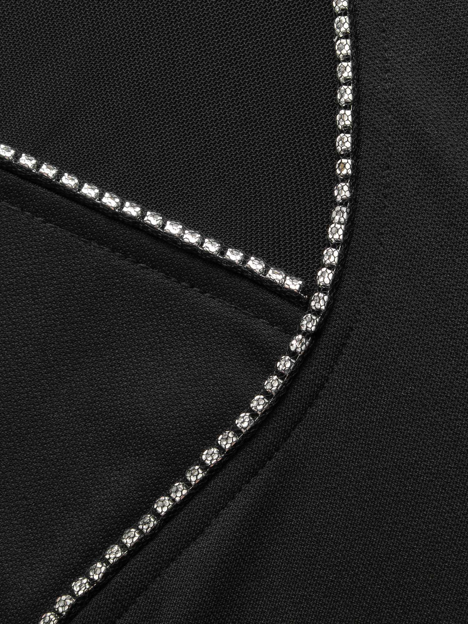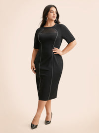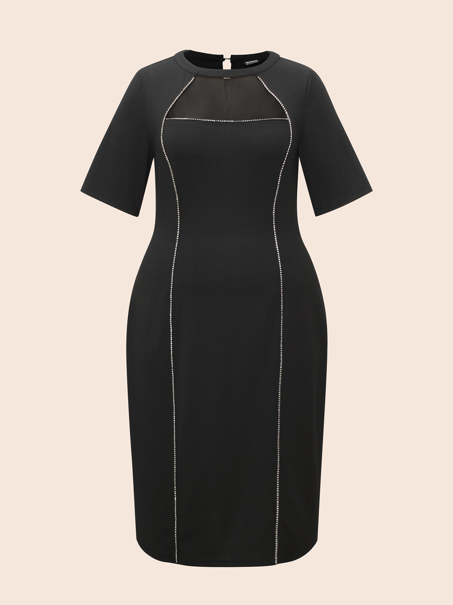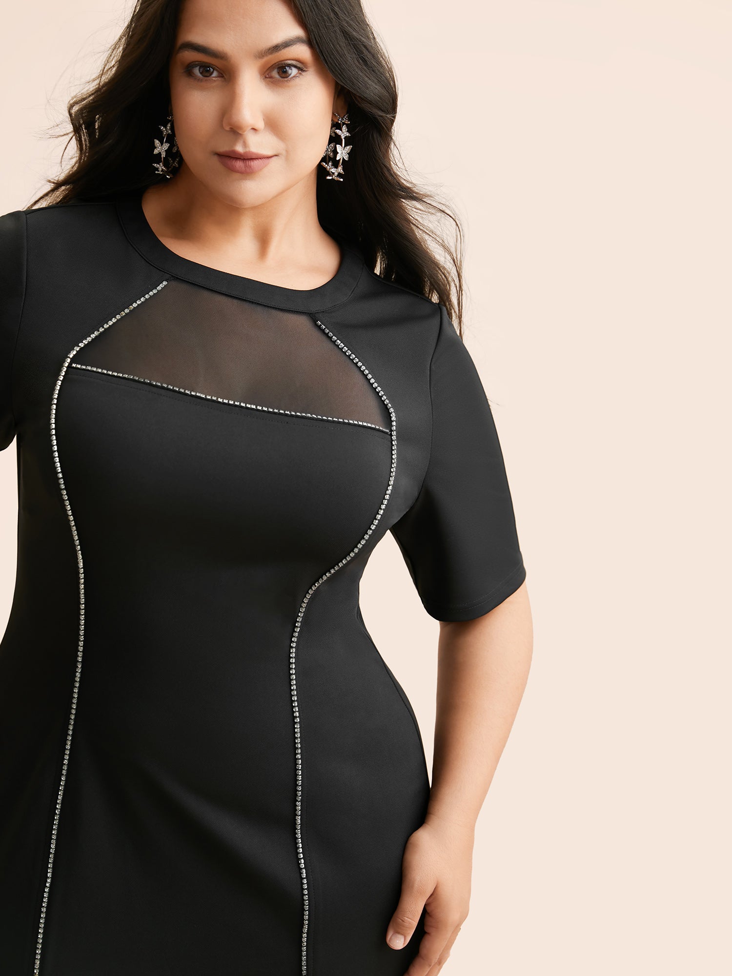 Crew Neck Rhinestone Patchwork Mesh Dress