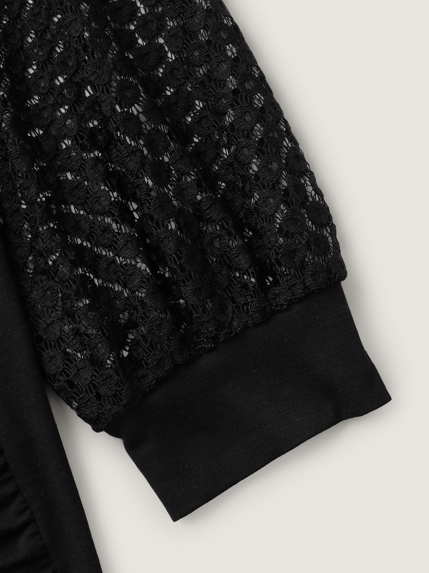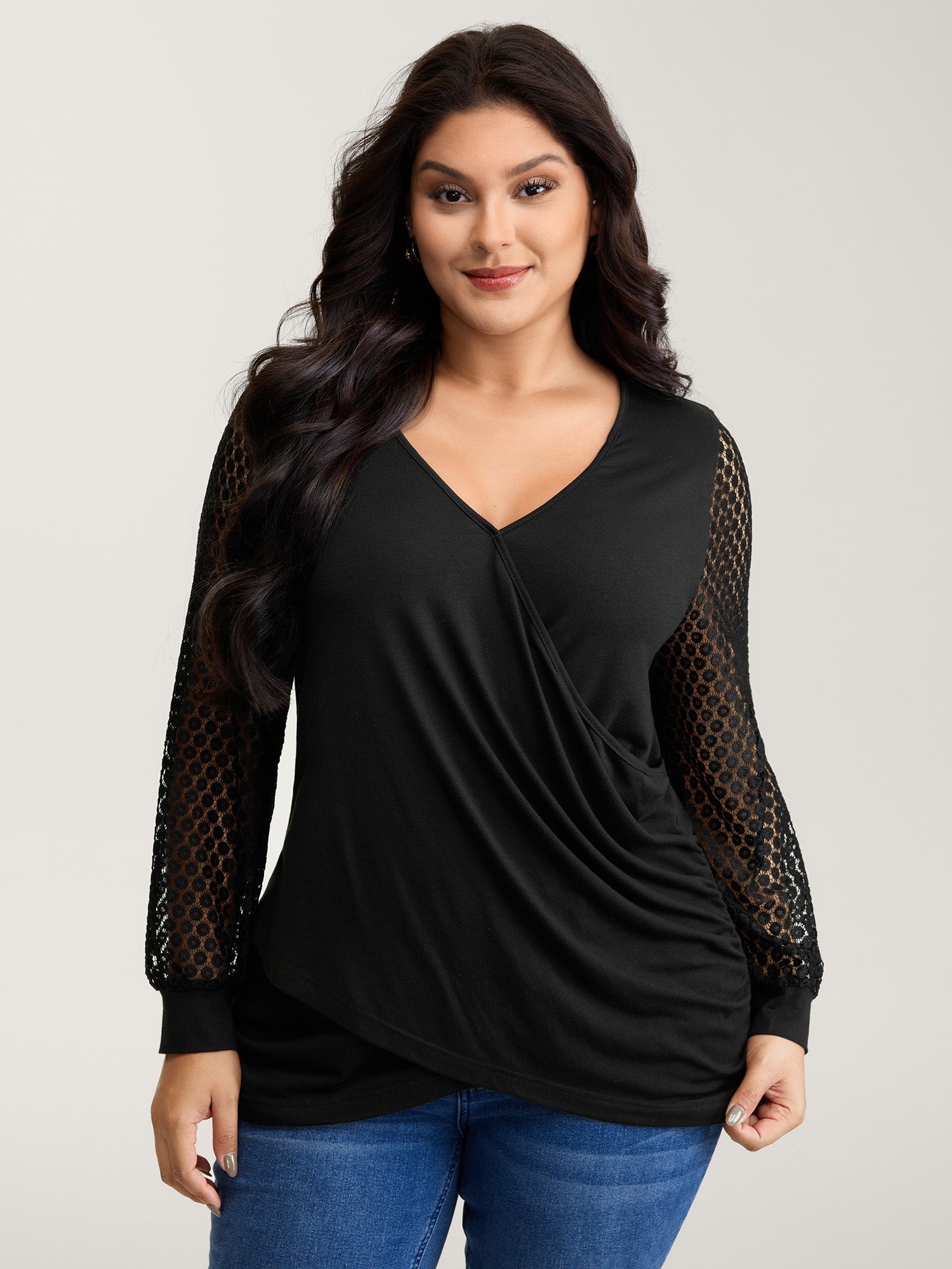 Crossover Draped Lace Sheer Sleeve Knit Top