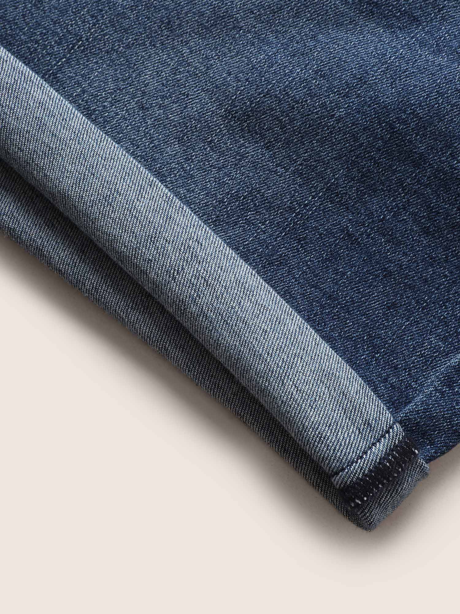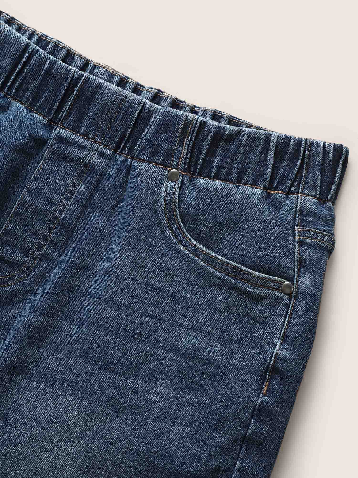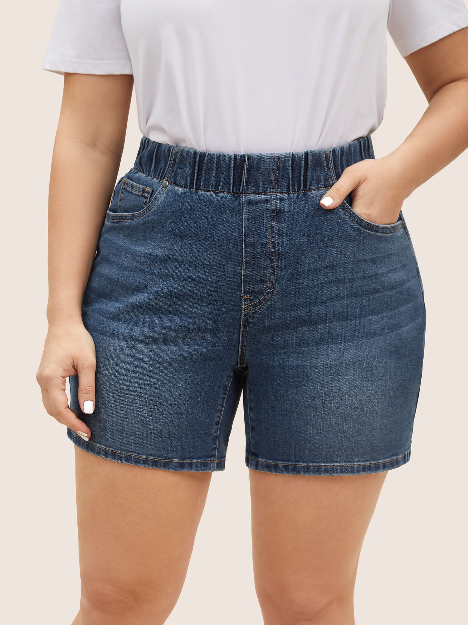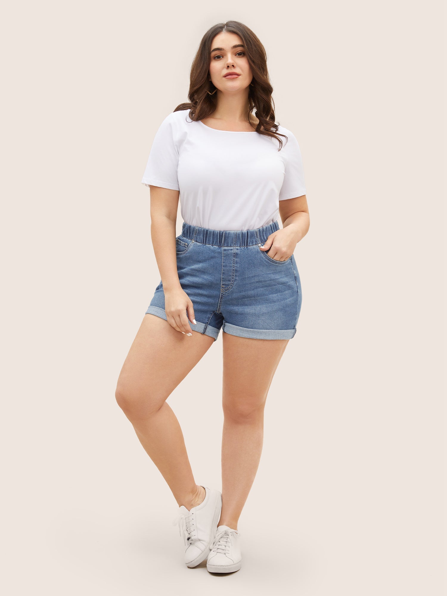 Dark Wash Elastic Waist Roll Hem Denim Shorts